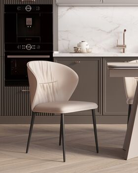 Обеденный стул Deia сочетает в себе современный стиль и утонченную эстетику. Эргономичная спинка с декоративной складкой создает изысканный акцент, а плавные линии каркаса добавляют легкость. Сиденье и спинка обиты качественной экокожей, приятной на ощупь и устойчивой к износу.