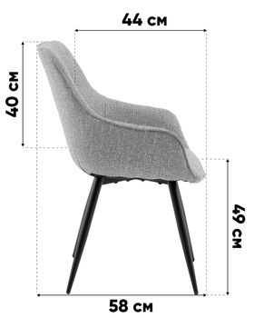 Габариты модели составляют 75×61×58 см — комфортная ширина и высота обеспечивают удобную посадку. Изогнутая спинка и мягкие подлокотники формируют эргономичное кресельное ощущение, при этом модель сохраняет компактность.