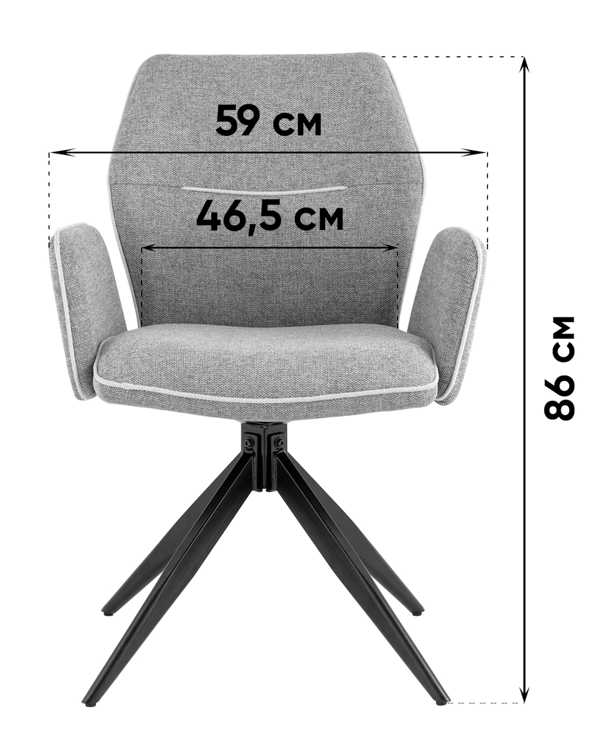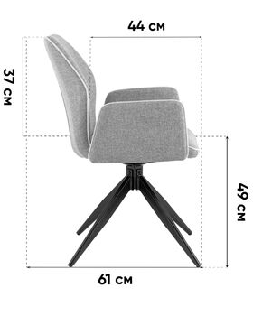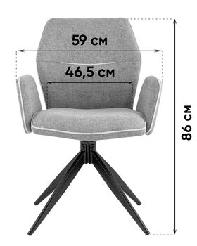 Мягкий стул со спинкой анатомической формы и удобными подлокотниками подарит комфорт и уют. Тканевая обивка оформлена декоративным кантом. Прочные ножки изготовлены из металла в черном цвете, поэтому обеспечивают хорошую устойчивость и делают стул оригинальным. Подпятники на ножках препятствуют скольжению и помогут защитить напольное покрытие от царапин. Изделие будет прекрасно смотреться как отдельный предмет мебели, так и в комплекте с обеденным или письменным столом.