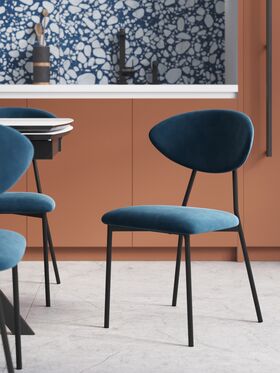 Удобство и надёжность в эксплуатации. Металлический каркас с чёрным матовым покрытием обеспечивает прочность и устойчивость. Обивка выполнена из мягкого на ощупь велюра, который придаёт стулу благородный внешний вид и лёгкость в уходе. Сиденье и спинка наполнены ППУ, обеспечивая приятную поддержку при длительном сидении.