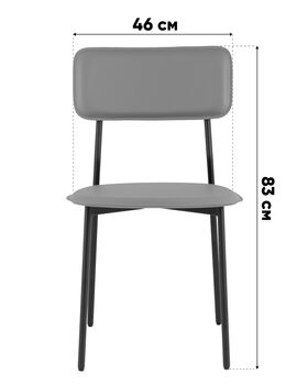 Материалы и цвета. Сиденье и спинка выполнены из качественной серой экокожи, которая легко чистится и устойчива к износу. Черный металлический каркас обеспечивает надежность и придает изделию современный и стильный вид.