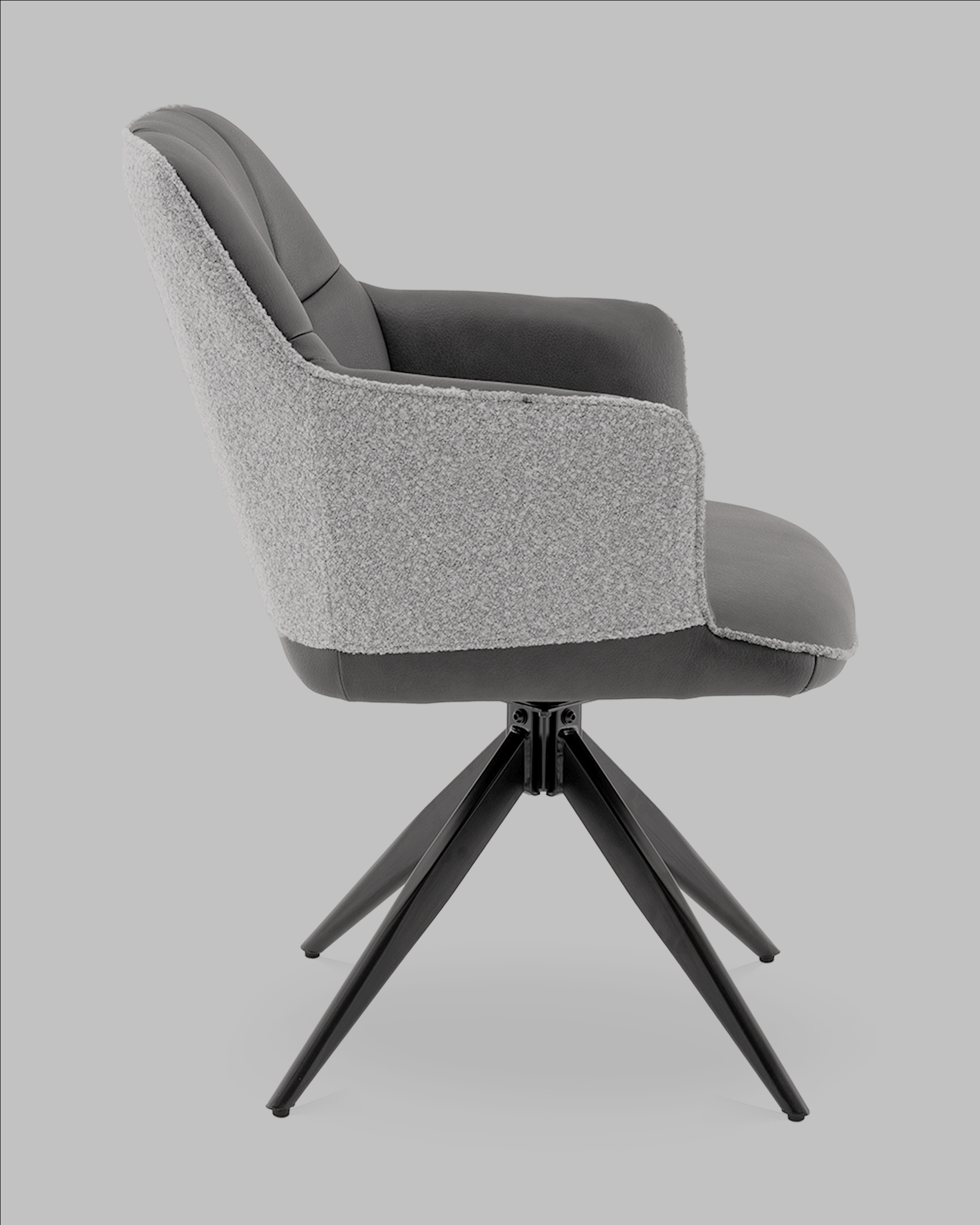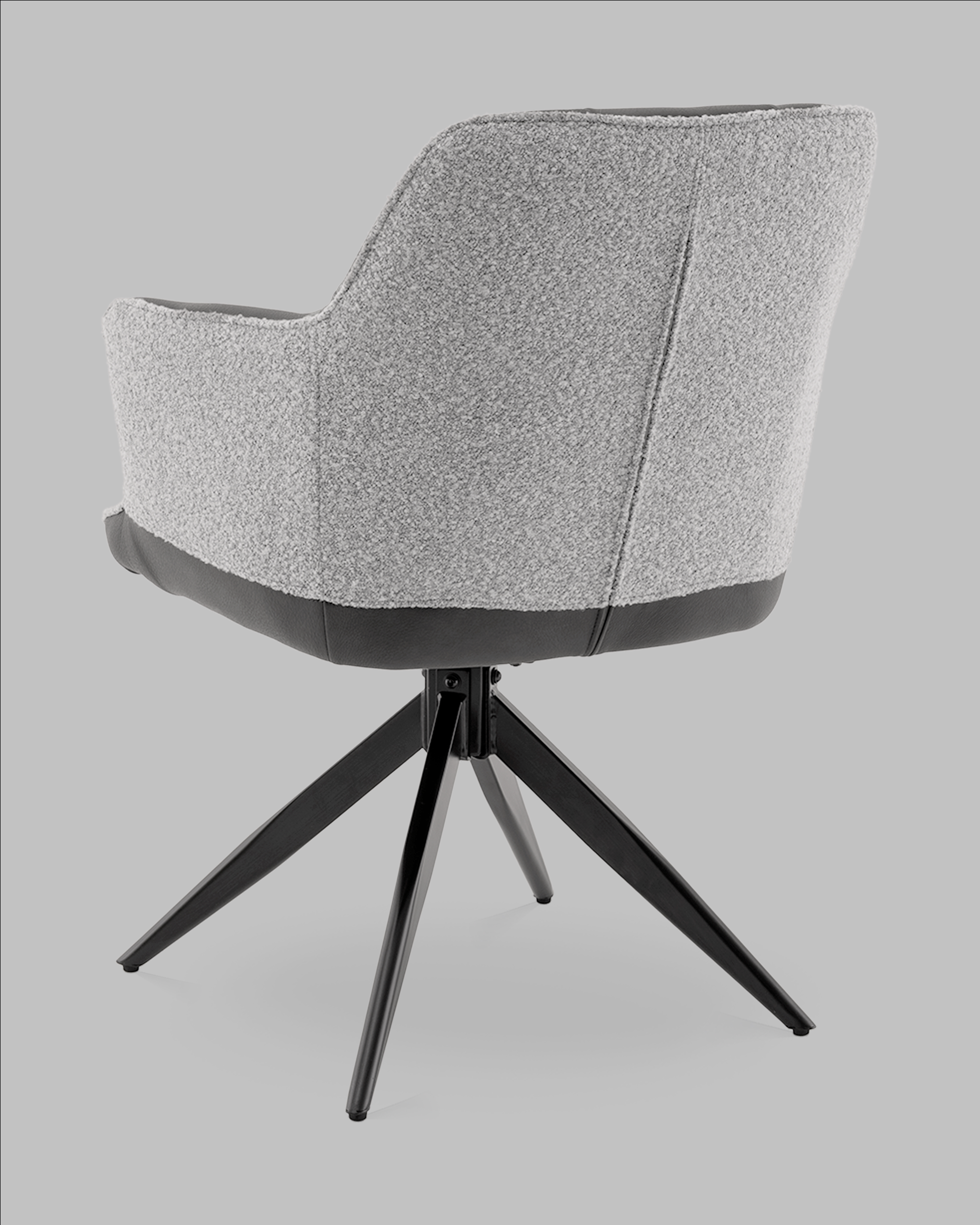 Стул оснащён поворотно-возвратным механизмом, позволяющим поворачиваться на 180° и автоматически возвращаться в исходное положение. Это особенно удобно в зонах с ограниченным пространством и при активном использовании в переговорных, гостиных или обеденных зонах.