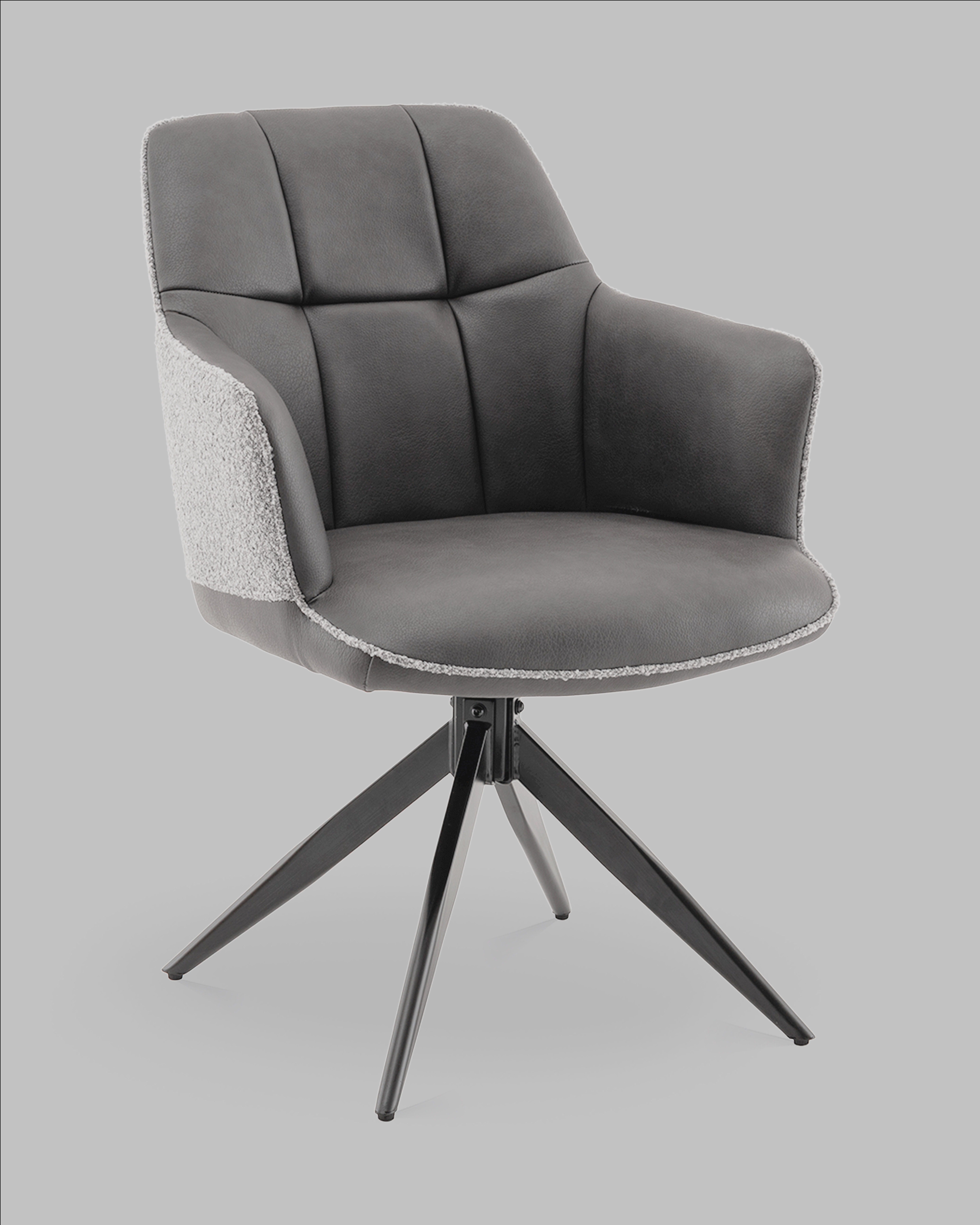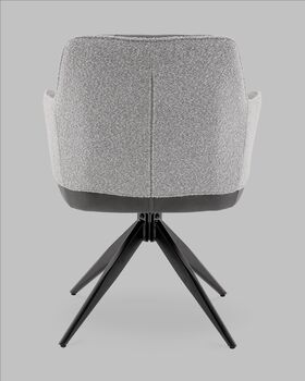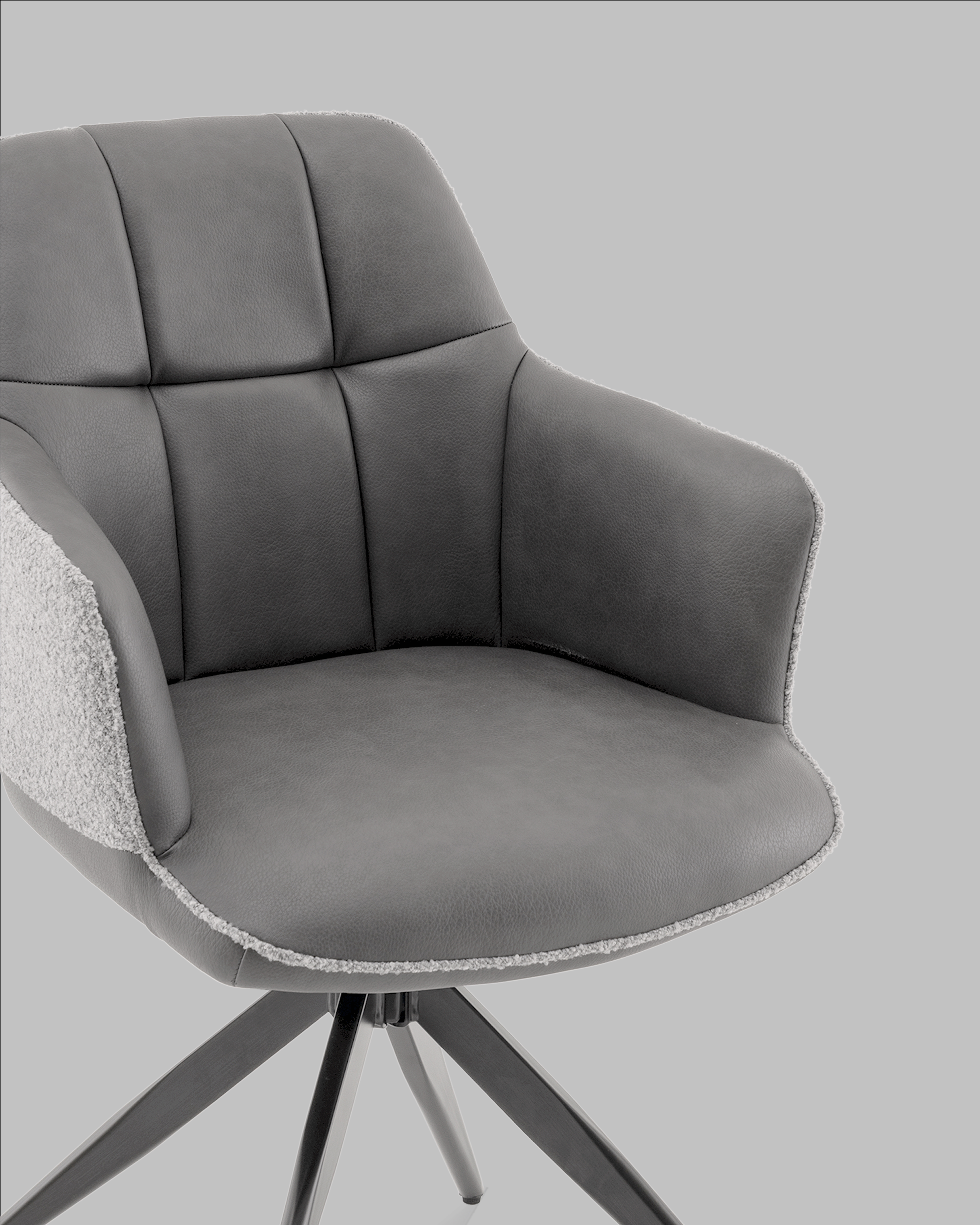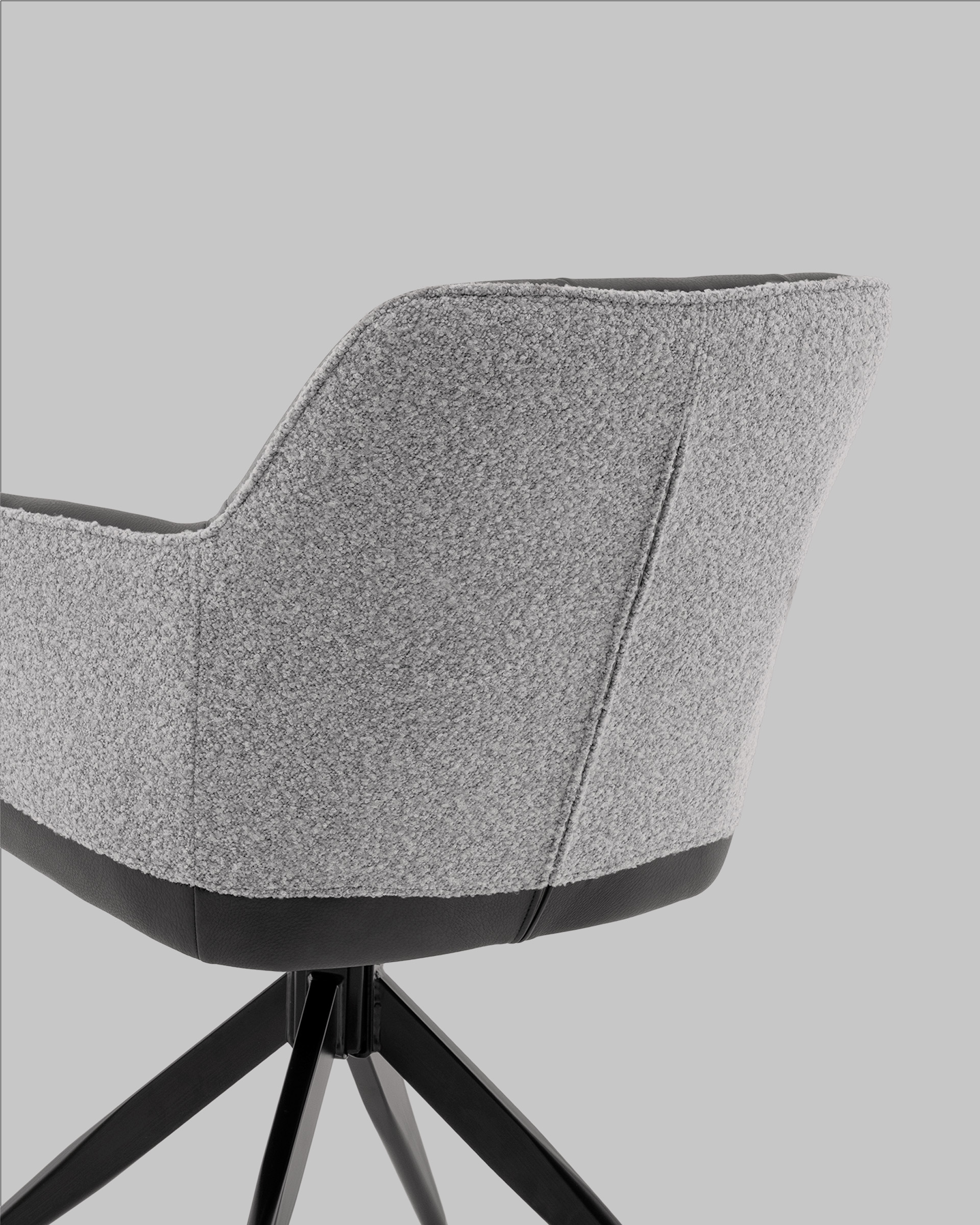 Стул обеденный Naya — это стильное решение для современных интерьеров. Сочетание гладкой серой экокожи и мягкой текстурированной ткани букле на задней части спинки придаёт модели контрастный и выразительный внешний вид. Такой дизайн делает стул акцентным элементом в обстановке кухни, гостиной, офиса или кафе.