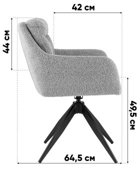 Стиль и универсальность. Серый цвет букле и элегантный дизайн делают стул Nia идеальным выбором для современных и скандинавских интерьеров. Он отлично впишется в гостиную, столовую или рабочую зону, добавляя выразительный цветовой акцент и стиль.