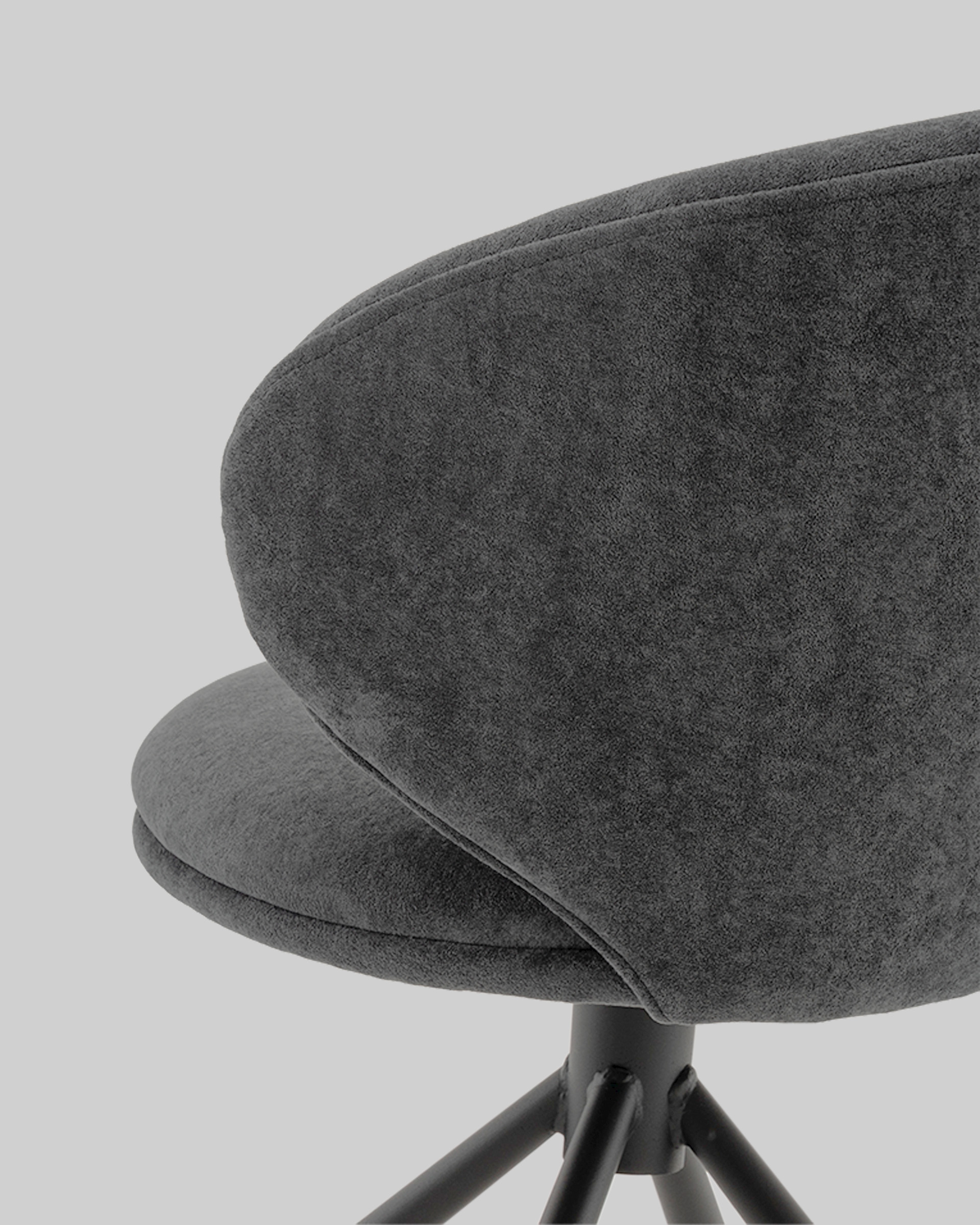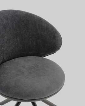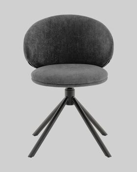 Стул Труфальд привлекает элегантной формой и уютной отделкой. Обивка из приятного на ощупь велюра в тёмно-сером оттенке придаёт модели нежный и утончённый вид, а плавно изогнутая спинка с мягкими контурами поддерживает спину и подчёркивает современный характер.