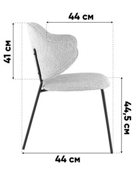Материалы и цвета. Сиденье и спинка покрыты мягким тканевым материалом букле кофейного оттенка, который имеет оригинальную фактуру и приятен на ощупь. Ножки выполнены из металла и выкрашены в черный цвет.
