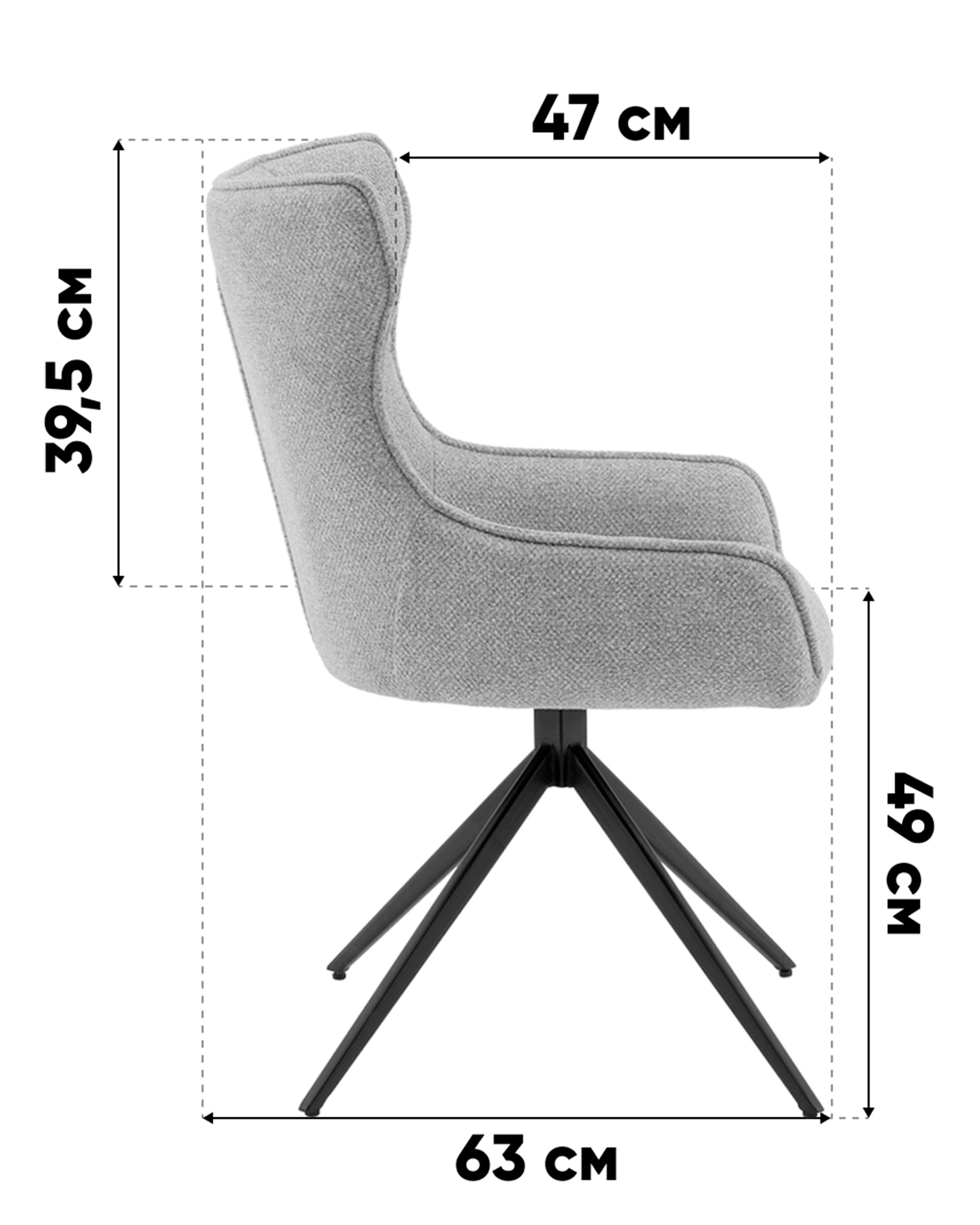 Сиденье и высокая спинка обиты тканью шенилл — приятной на ощупь, с выразительной текстурой и устойчивостью к истиранию. Материал не только создаёт ощущение мягкости и тепла, но и легко поддаётся уходу. Стеганые детали добавляют объёма и подчёркивают визуальную лёгкость модели.