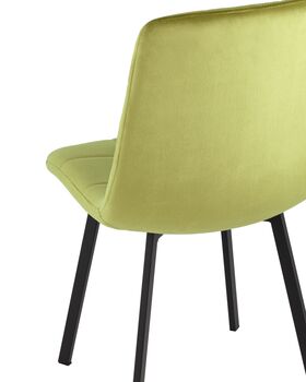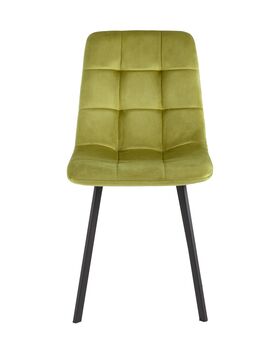 Классический обеденный стул без подлокотников на металлических ножках плоской формы. Мягкая обивка выполнена из велюра - прочного, износостойкого и приятного на ощупь материала. Внутренняя сторона сиденья и спинки украшена геометричной строчкой. Стулья прослужат долгие годы, не требуют много времени для ухода. Лаконичный дизайн делает его универсальным вариантом для обустройства обеденной зоны.