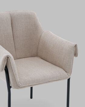 Наличие подлокотников и эргономичной спинки делает посадку особенно удобной — стул подходит не только для обеденной зоны, но и для отдыха или общения за столом. Его лаконичный, но выразительный силуэт легко впишется в интерьер дома, ресторана или кафе, добавляя уюта и современности.