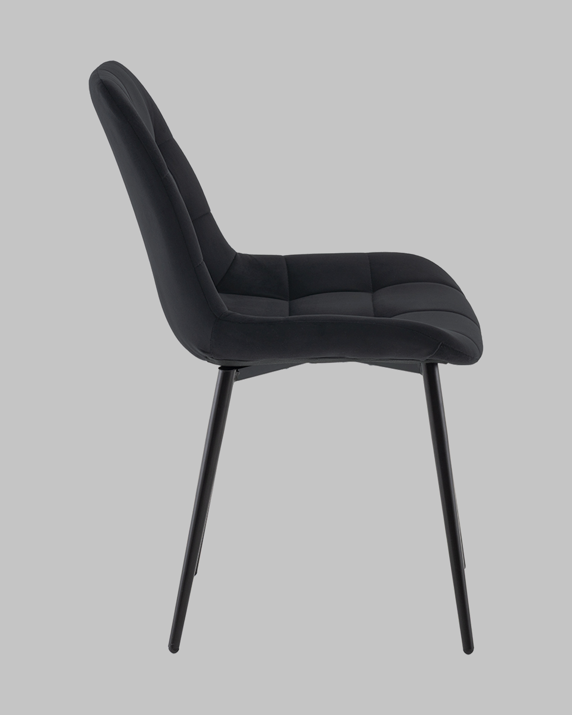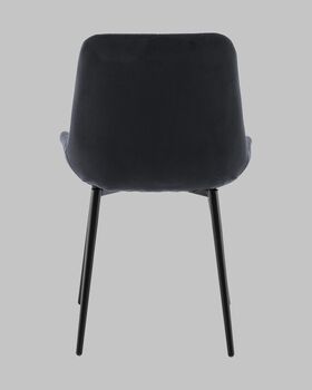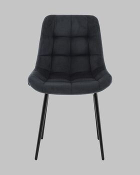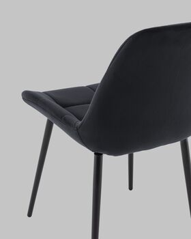 Материалы и дизайн. Выполнен из высококачественного велюра — тактильно приятного, износостойкого и простого в уходе материала. Обивка черного цвета с черными металлическими ножками придают стулу элегантный и современный вид. Сиденье с анатомической формой гарантирует комфорт, а декоративная стяжка добавляет объём и предотвращает от появления вмятин. Стул подходит для длительного использования, не теряя своей формы и внешнего вида.