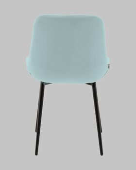 Тонкие, но прочные ножки из черного металла создают устойчивую основу и подчёркивают современный силуэт изделия. Благодаря прочному каркасу и качественным материалам, стул выдерживает повседневное использование, оставаясь надежным и эстетичным элементом интерьера.