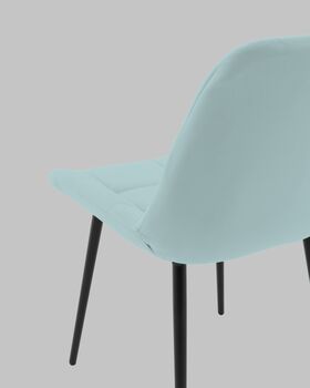 Стул Флекс N — это воплощение минимализма и уюта. Его обивка выполнена из мягкого велюра Velutto в элегантном светло-голубом оттенке, который добавляет интерьеру спокойствия и сдержанного стиля. Благодаря приятной на ощупь текстуре и объемной квадратной простежке, спинка и сиденье выглядят уютно и стильно одновременно.