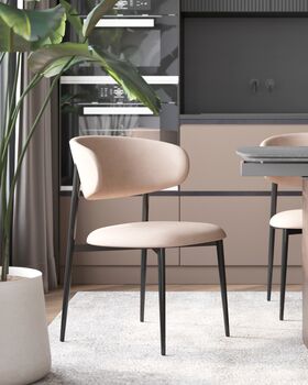 Дизайн и материалы. Стул Килиан выполнен в современном стиле, который идеально впишется в любой интерьер. Обивка сиденья и спинки выполнена из мягкого и приятного на ощупь велюра молочного цвета — прочного и износостойкого материала. Каркас из металла в черном цвете добавляет элегантности и изысканности.