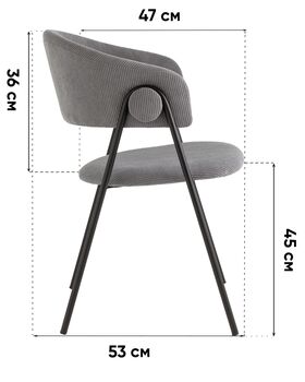 Стильный кухонный стул с оригинальной формой спинки. В качестве обивки используется мягкий велюр, износостойкий, гигроскопичный материал с приятной на ощупь бархатистой фактурой. Металлический каркас в черном цвете огибает спинку и выступает аккуратным акцентом модели. Широкое сиденье обеспечивает удобную посадку и уют.
