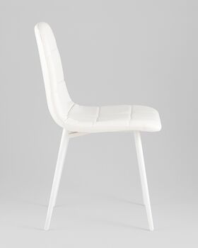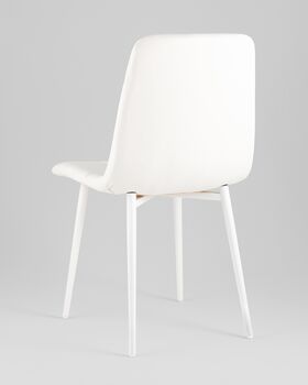 Тонкие, но прочные ножки из белого металла создают устойчивую основу и подчёркивают современный силуэт изделия. Благодаря прочному каркасу и качественным материалам, стул выдерживает повседневное использование, оставаясь надежным и эстетичным элементом интерьера.
