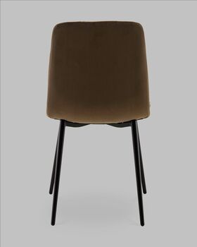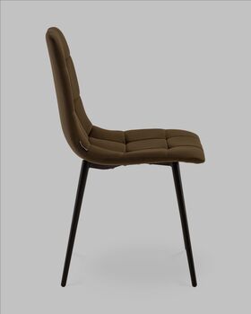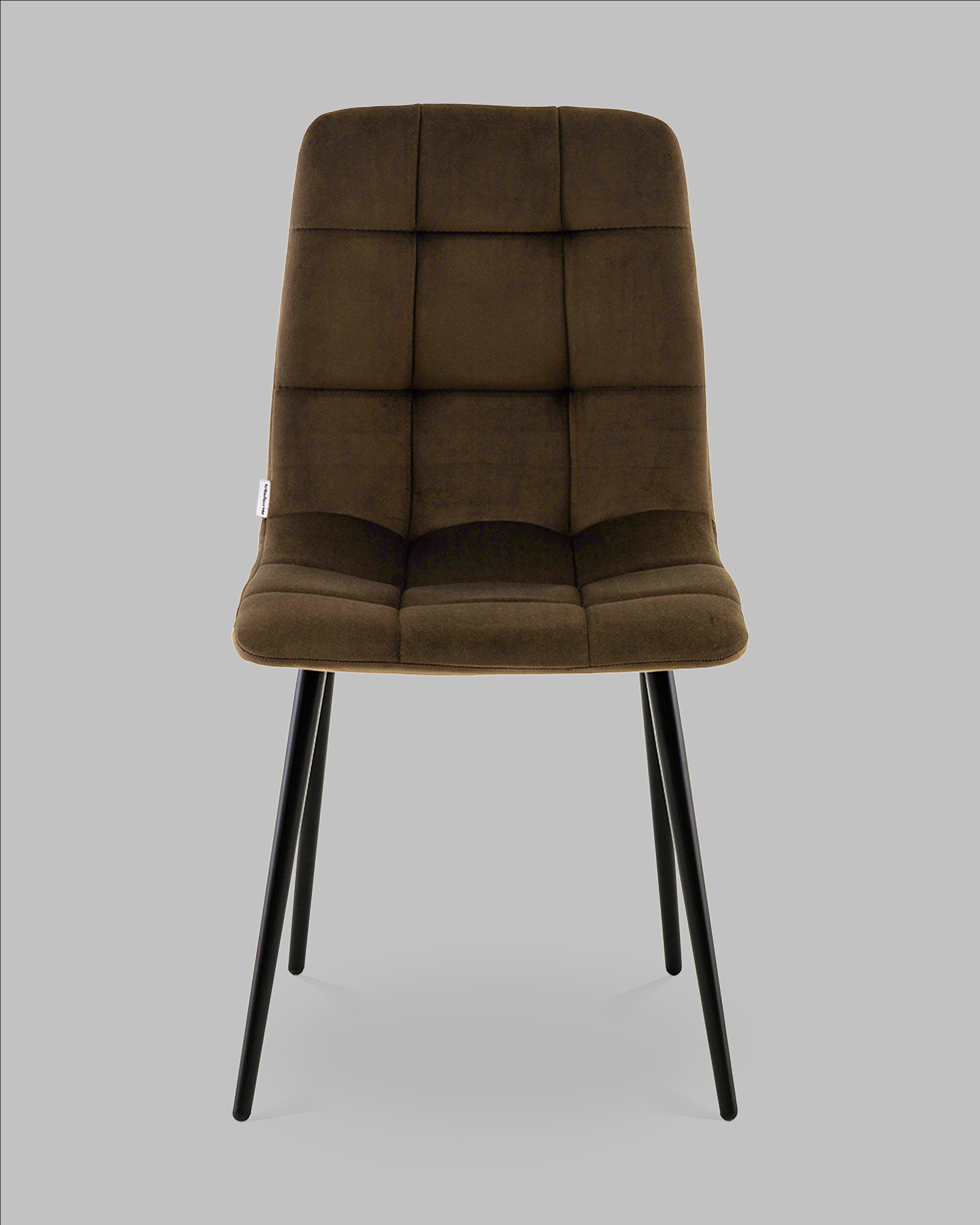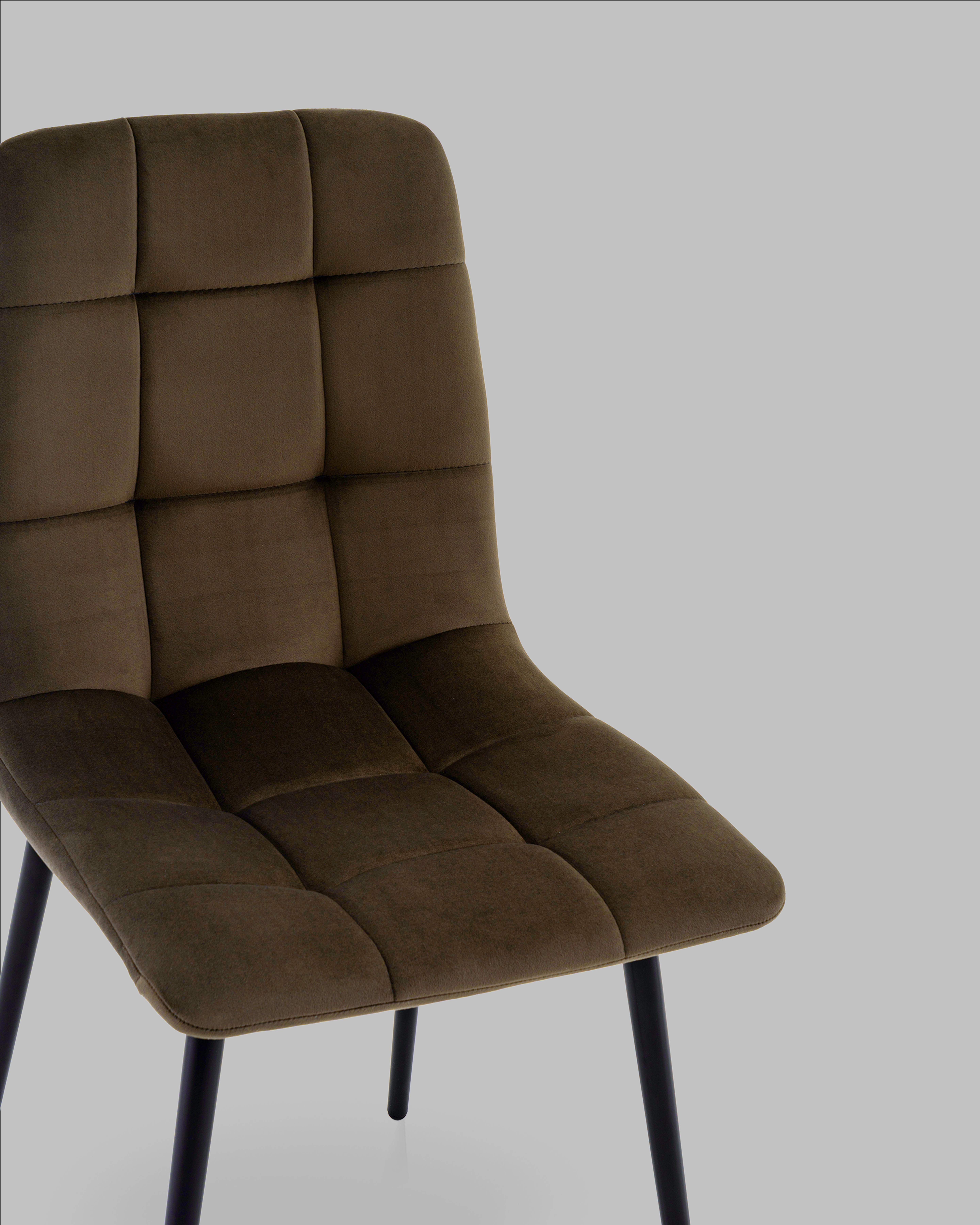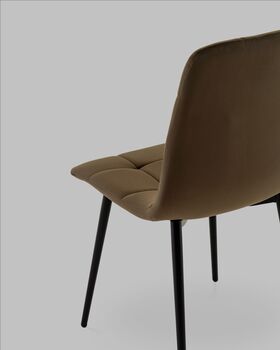 Стул Одди — это воплощение минимализма и уюта. Его обивка выполнена из мягкого велюра в элегантном коричневом цвете, который добавляет интерьеру спокойствия и сдержанного стиля. Благодаря приятной на ощупь текстуре и объемной квадратной простежке, спинка и сиденье выглядят уютно и стильно одновременно.