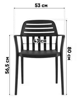 Материалы и конструкция. Каркас и сиденье выполнены из прочного пластика, который легко очищается и устойчив к влаге и перепадам температур. Подлокотники и спинка обеспечивают комфортную поддержку, а ножки гарантируют отличную устойчивость.