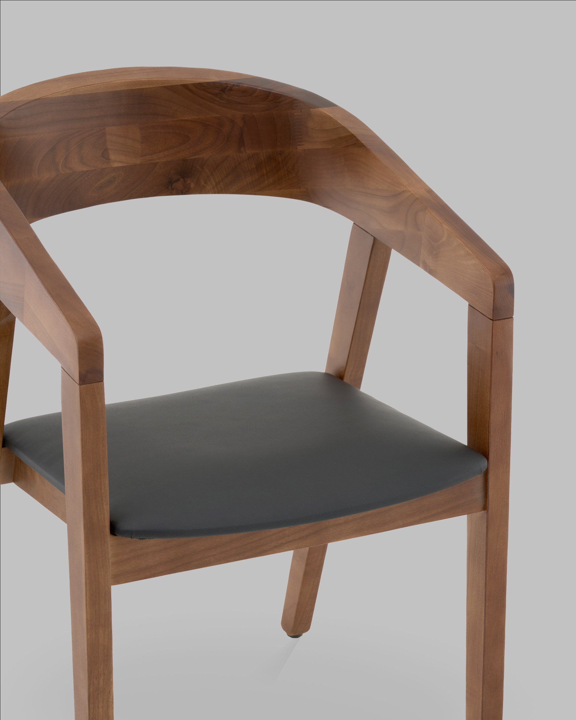 Каркас и ножки выполнены полностью из массива дерева, что гарантирует надёжность и устойчивость конструкции при максимальной нагрузке до 120 кг. Оттенок «тёмный орех» подчёркивает натуральную текстуру древесины.