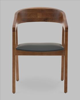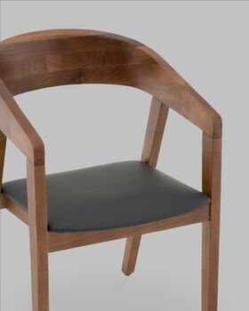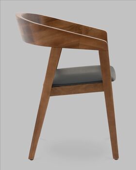 Вудкерри — это воплощение актуального скандинавского минимализма с ярко выраженной дизайнерской индивидуальностью. Натуральные линии и текстура дерева в оттенке тёмный орех придают стулу ощущение уюта и тепла, подчёркивая натуральность и экологичность образа. Элегантный силуэт с округлыми скошенными линиями спинки и подлокотников визуально облегчает конструкцию и придаёт интерьеру современный характер.