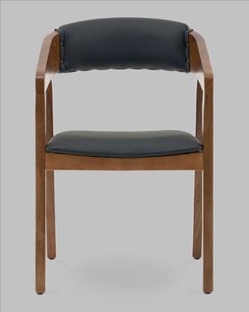Сиденье выполнено из качественной экокожи в чёрном цвете — материал практичный, приятный на ощупь и простой в уходе. Мягкая обивка делает посадку удобной даже при продолжительном использовании. Деревянный каркас и ножки придают прочность конструкции, выдерживая нагрузку до 120 кг.