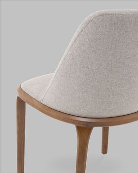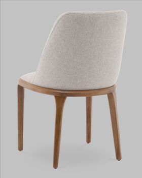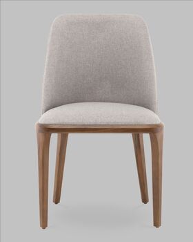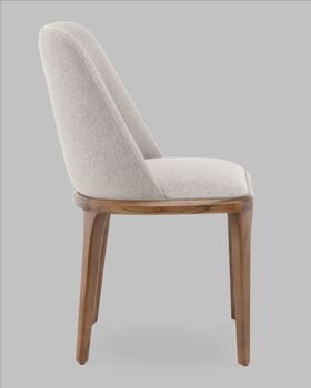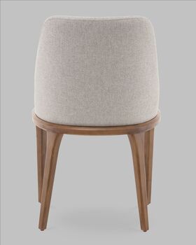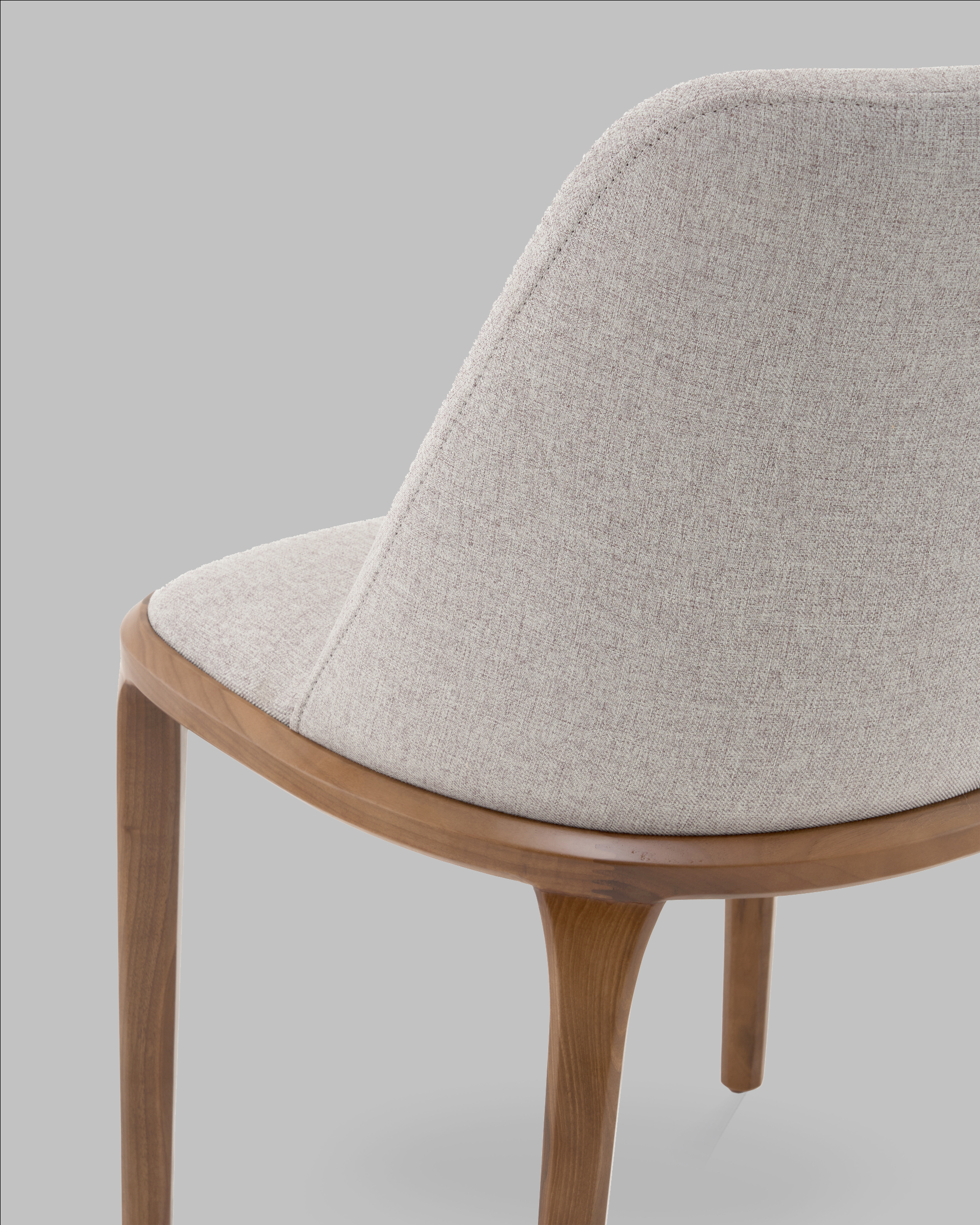 Вудмайкл — это воплощение современного минимализма с акцентом на натуральные материалы и продуманную форму. Деревянный каркас и ножки в оттенке тёмный орех придают модели тёплый, натуральный облик и подчёркивают текстуру дерева. Чистые линии, слегка сужающиеся книзу ножки и аккуратные скругления делают образ стула гармоничным и лёгким.