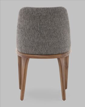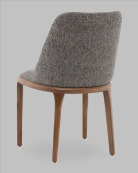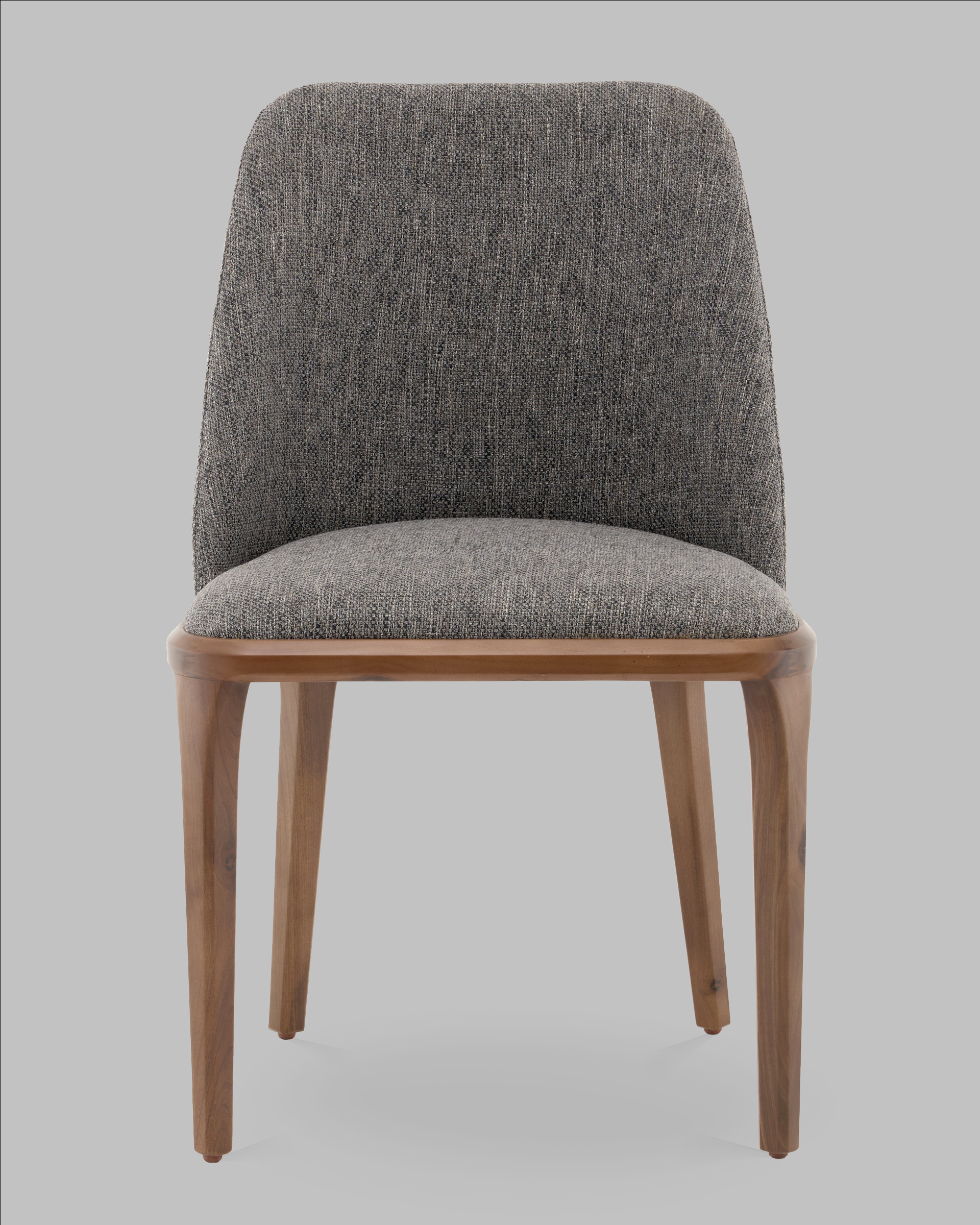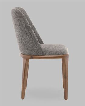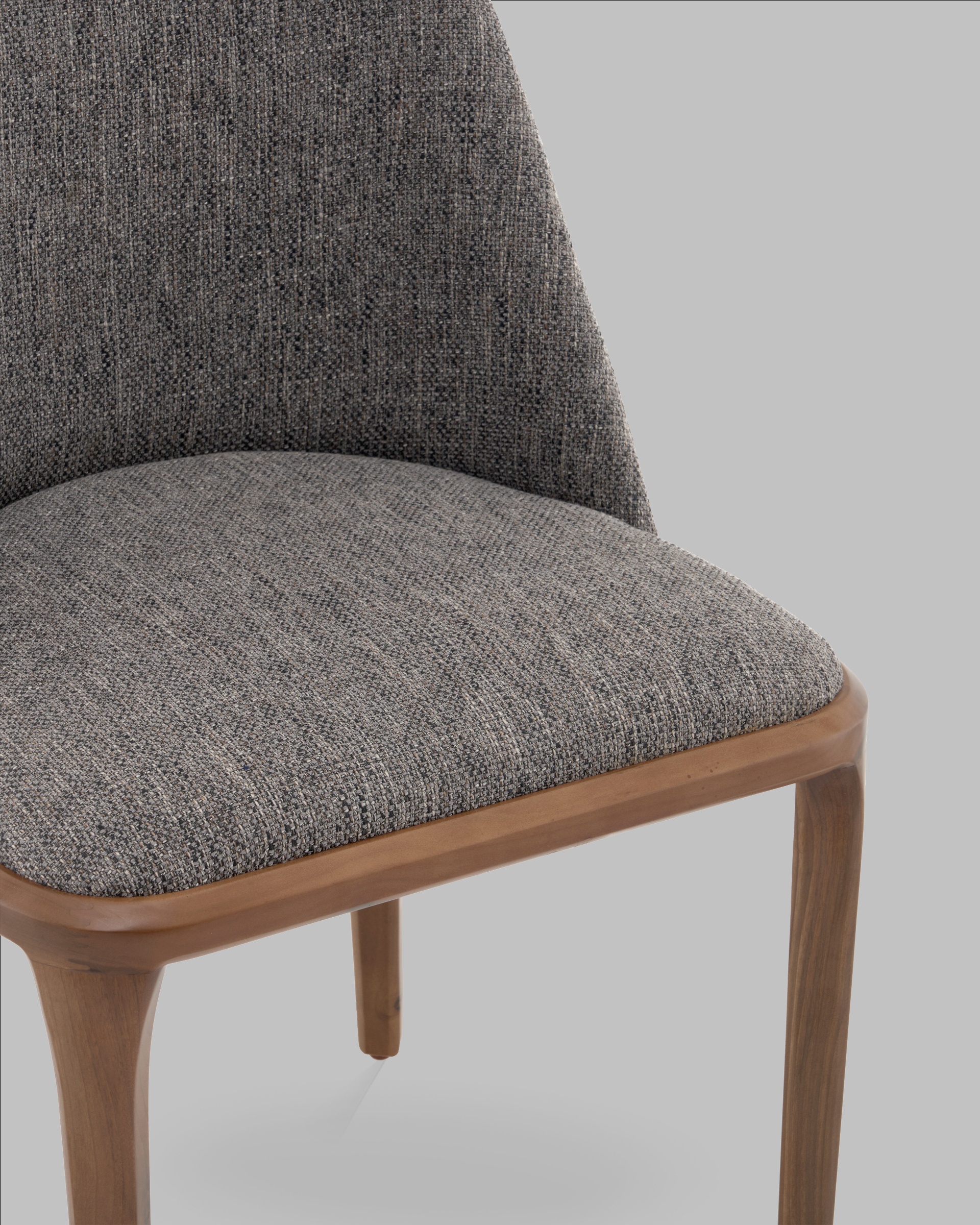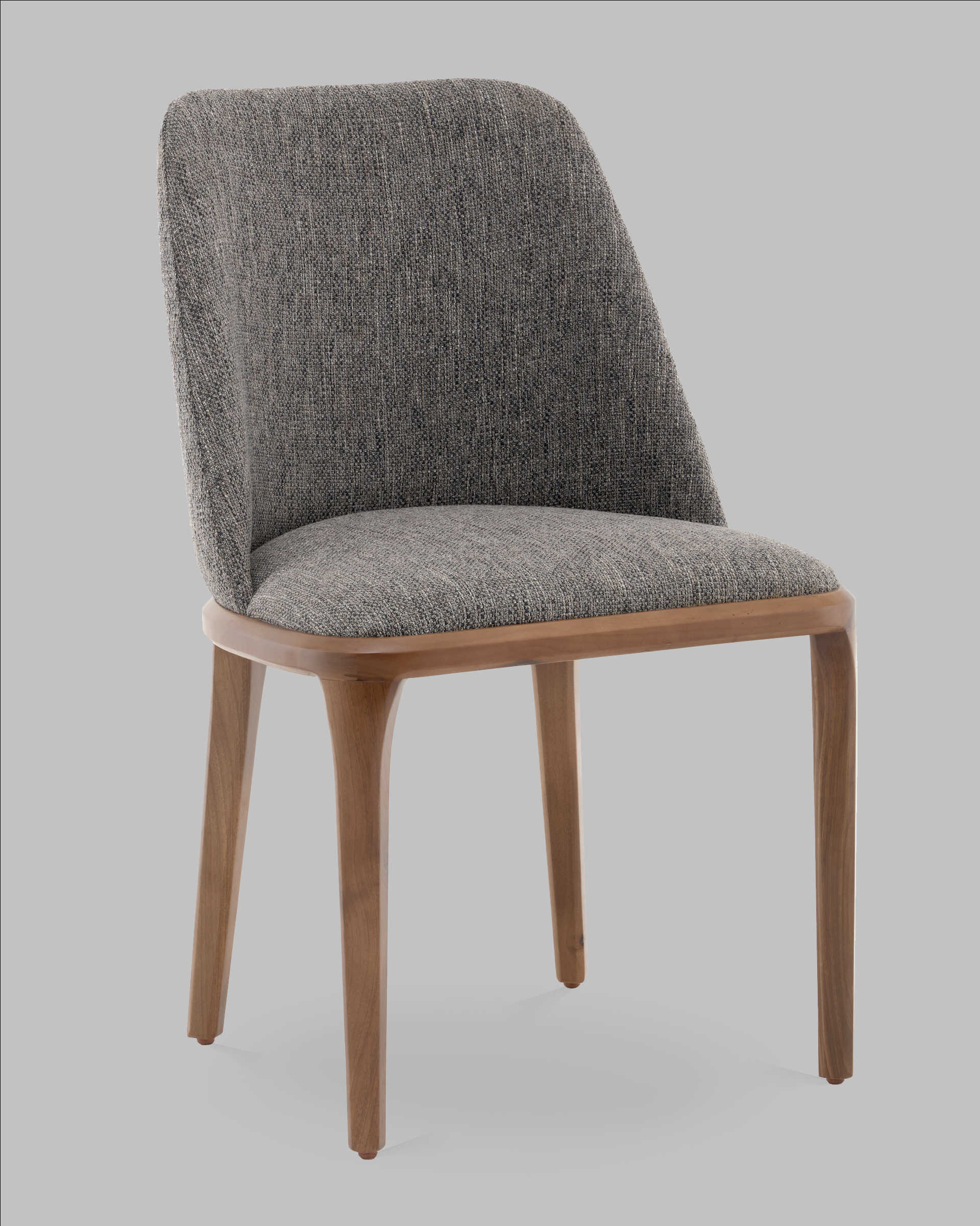 Вудмайкл — это воплощение современного минимализма с акцентом на натуральные материалы и продуманную форму. Деревянный каркас и ножки в оттенке тёмный орех придают модели тёплый, натуральный облик и подчёркивают текстуру дерева. Чистые линии, слегка сужающиеся книзу ножки и аккуратные скругления делают образ стула гармоничным и лёгким.