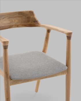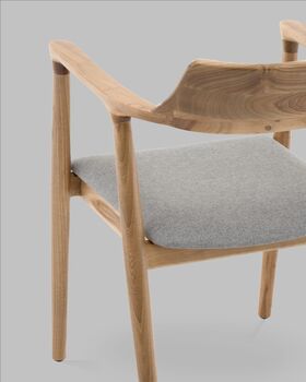 Вудримини — это воплощение скандинавского подхода к мебели: простота формы, натуральные материалы и внимание к деталям. Каркас из дерева в оттенке натуральный орех подчёркивает природную текстуру и тепло. Утончённые линии каркаса переходят в изогнутые подлокотники, формируя цельный и гармоничный силуэт.