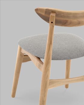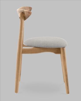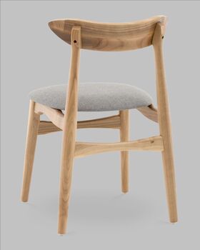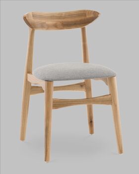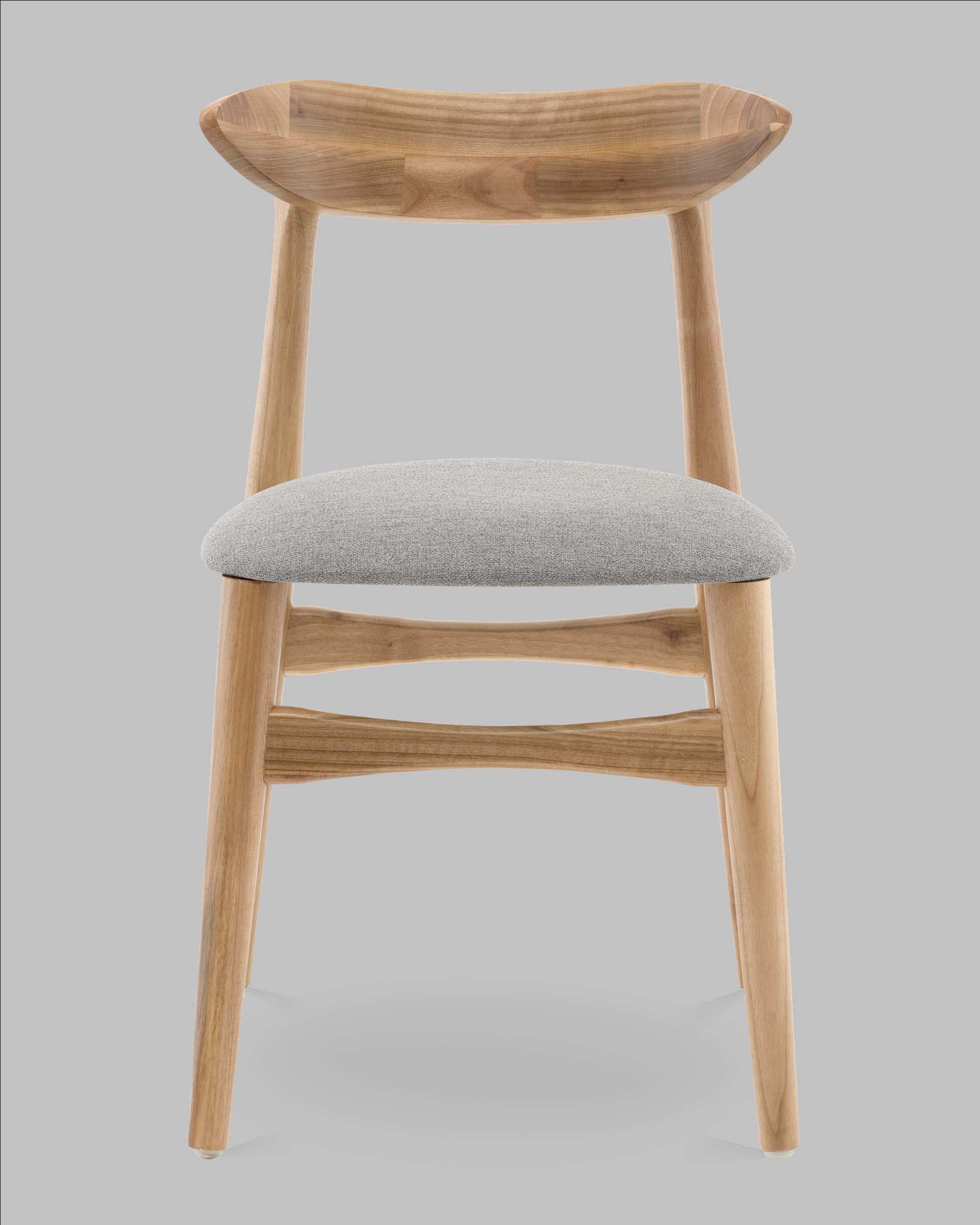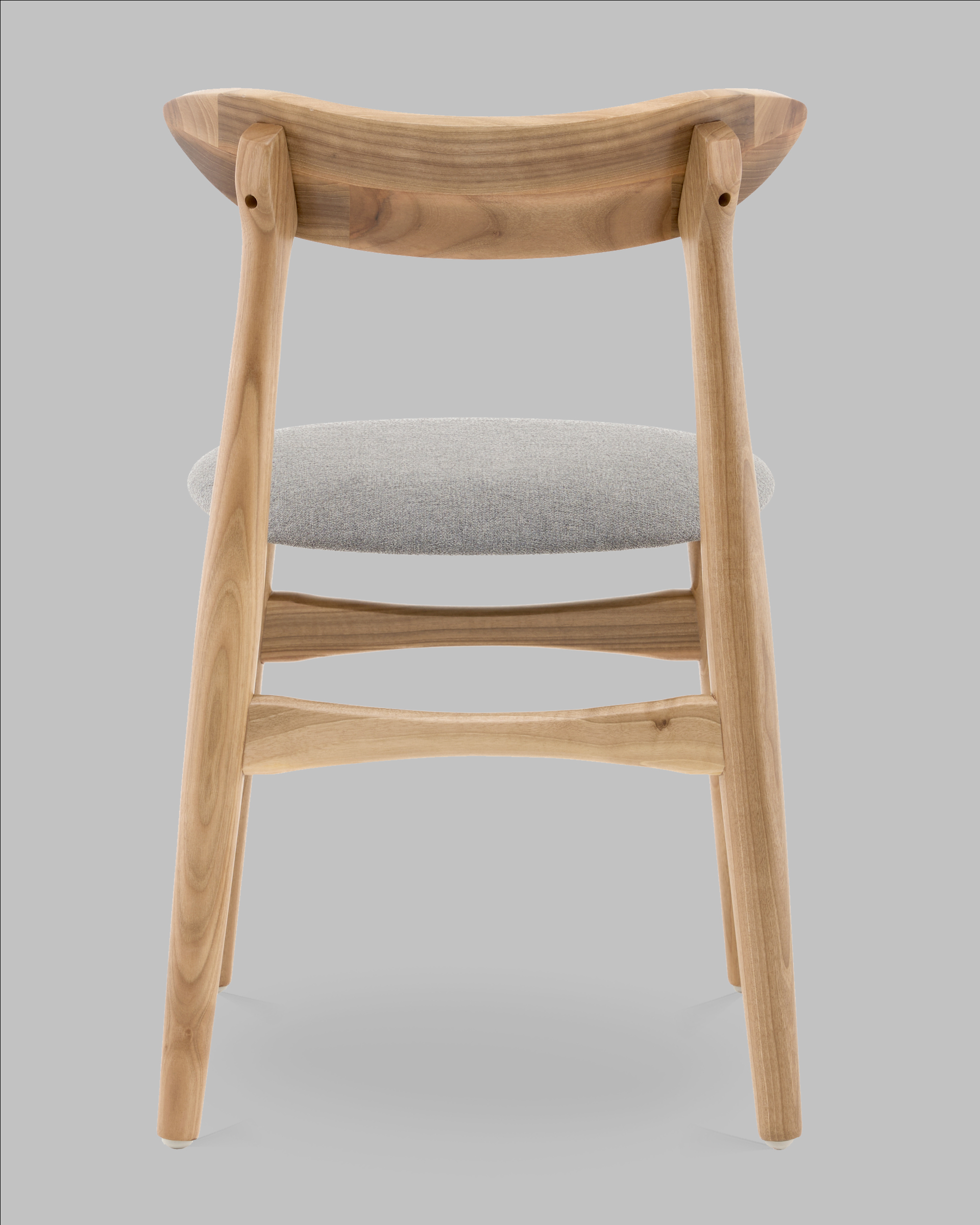 Особое внимание привлекает спинка — изящно изогнутая и эргономичная. Её плавная форма поддерживает спину и подчёркивает натуральный рисунок древесины. Этот элемент делает стул не только удобным, но и акцентным предметом интерьера, добавляя индивидуальности даже самому минималистичному пространству.