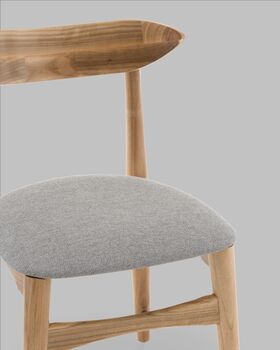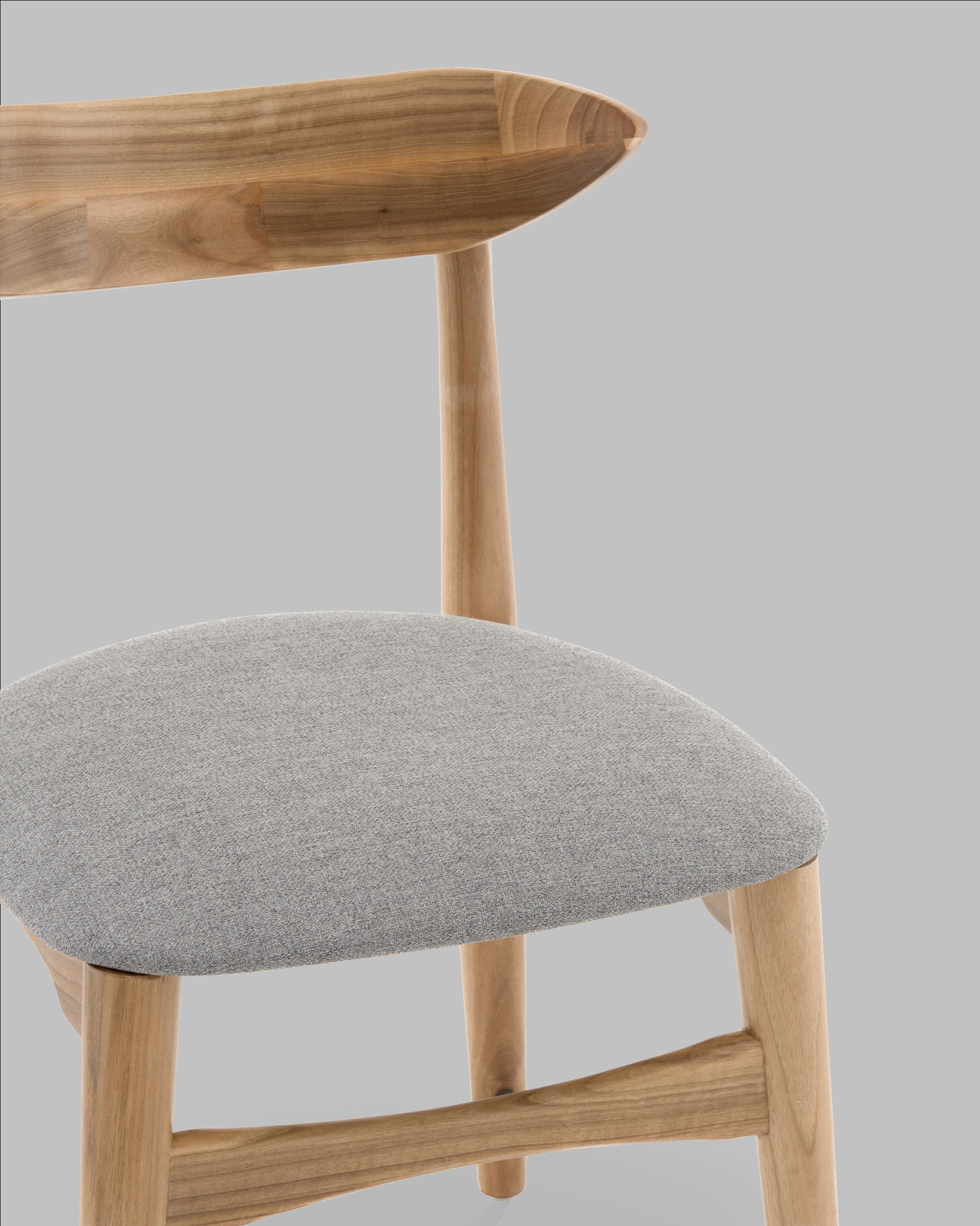 Вудсимпл — это образец скандинавской эстетики, где простота форм соединяется с функциональностью. Каркас и ножки из дерева в оттенке натуральный орех подчёркивают природную текстуру и создают ощущение тепла и уюта в интерьере. Лёгкие, тонкие линии и продуманная геометрия делают силуэт стула воздушным и ненавязчивым.