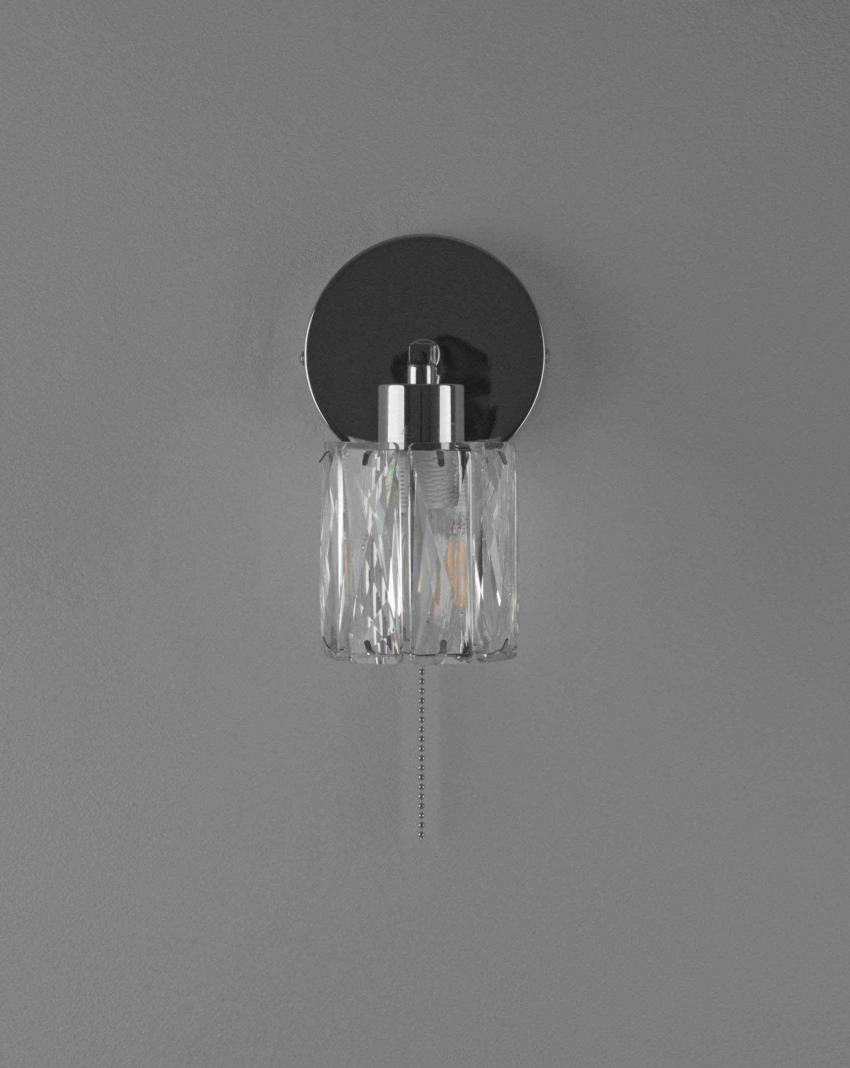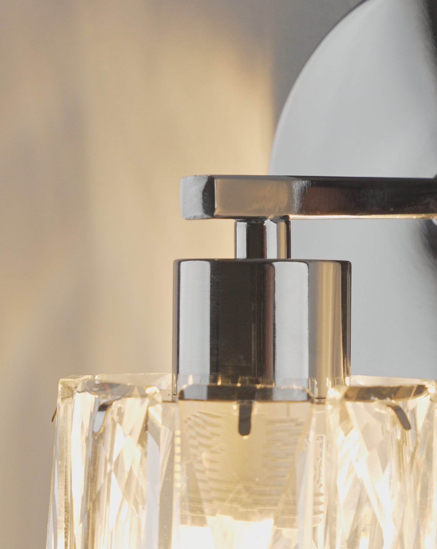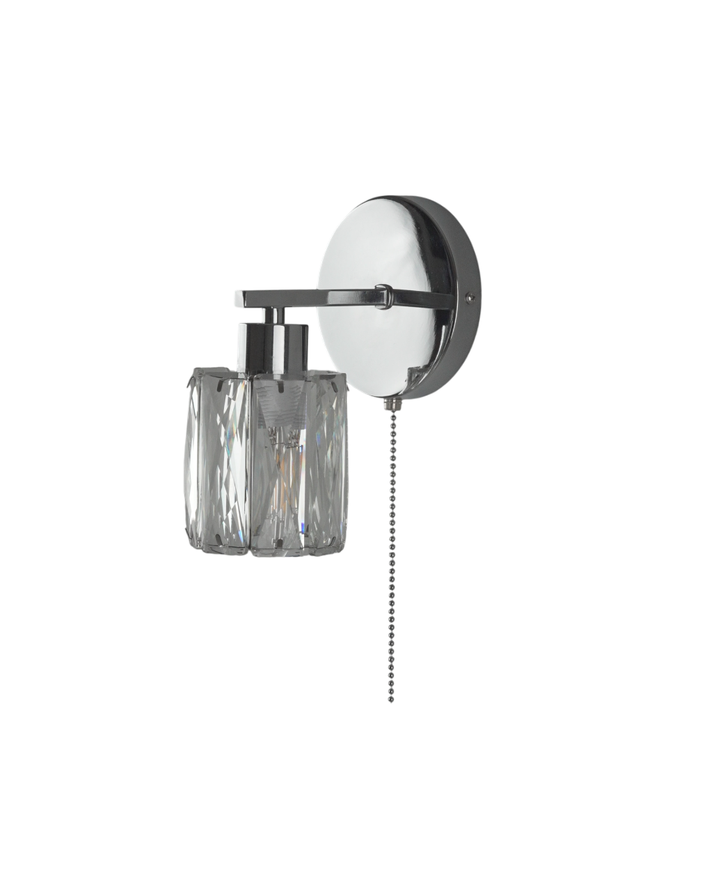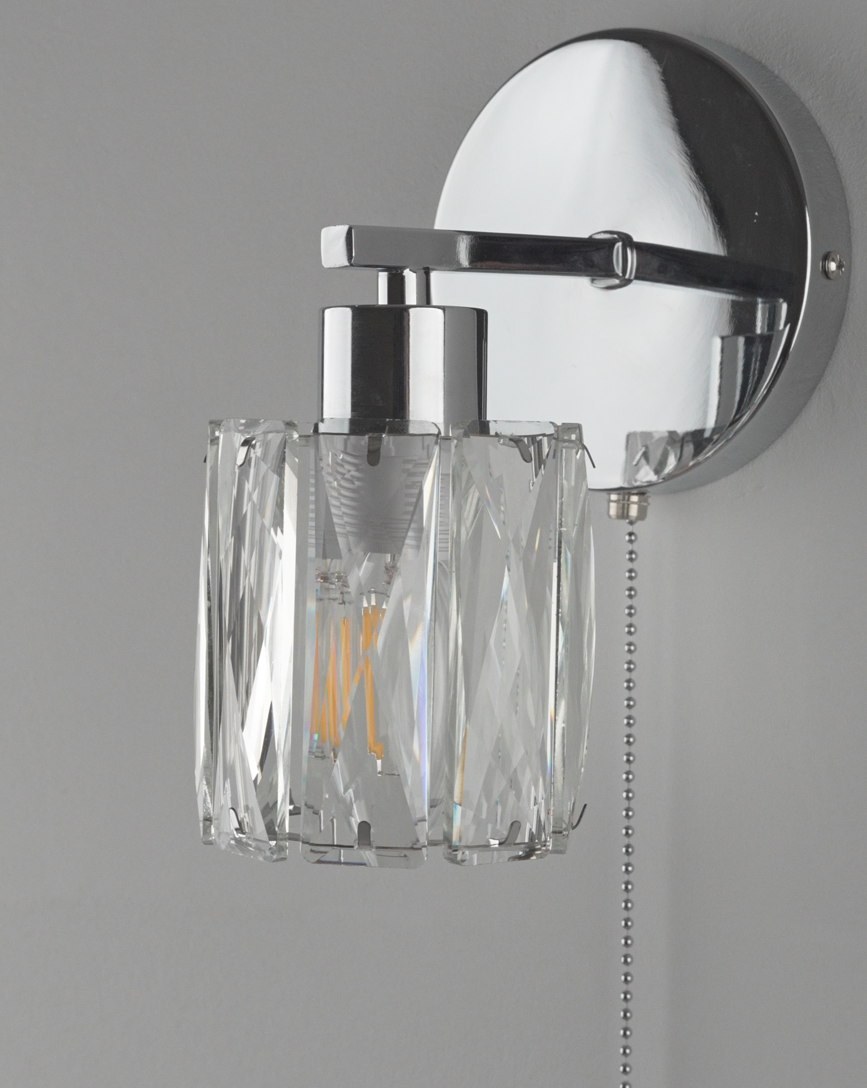 Металлический корпус с зеркальным хромовым покрытием подчёркивает прозрачность хрусталя и делает светильник универсальным решением для интерьеров в стиле классика, неоклассика и современный гламур.