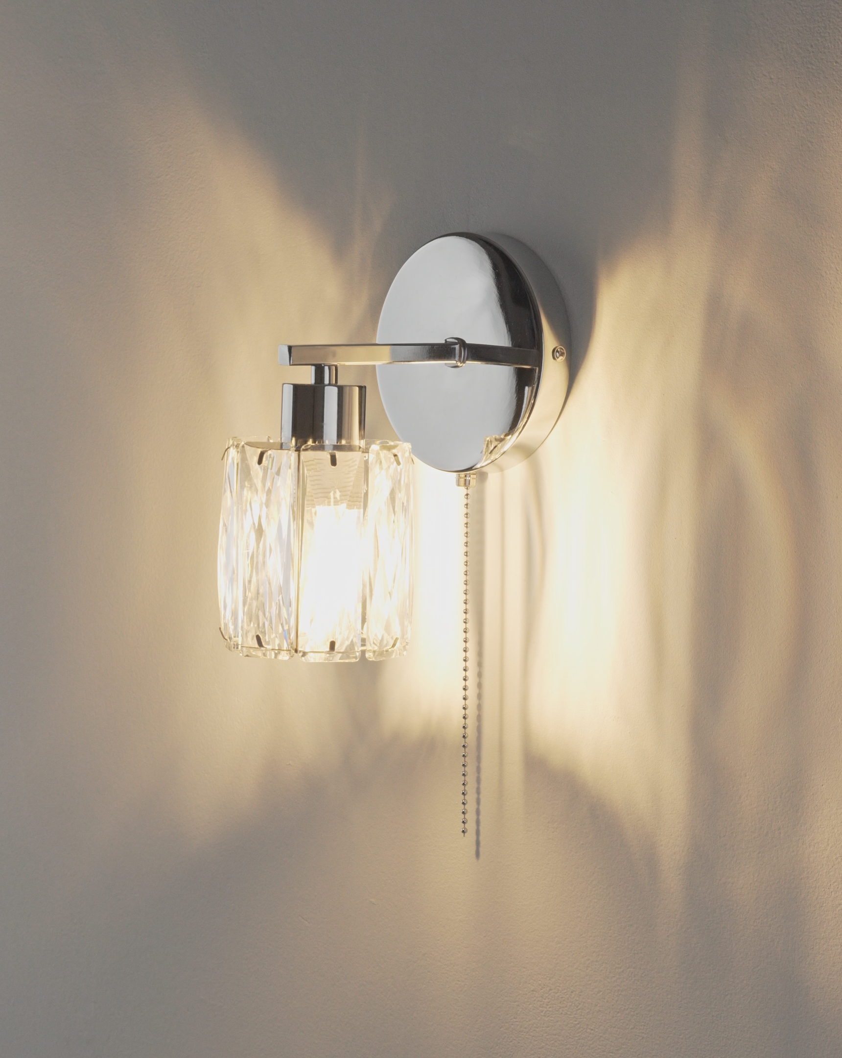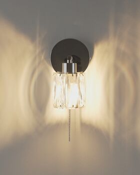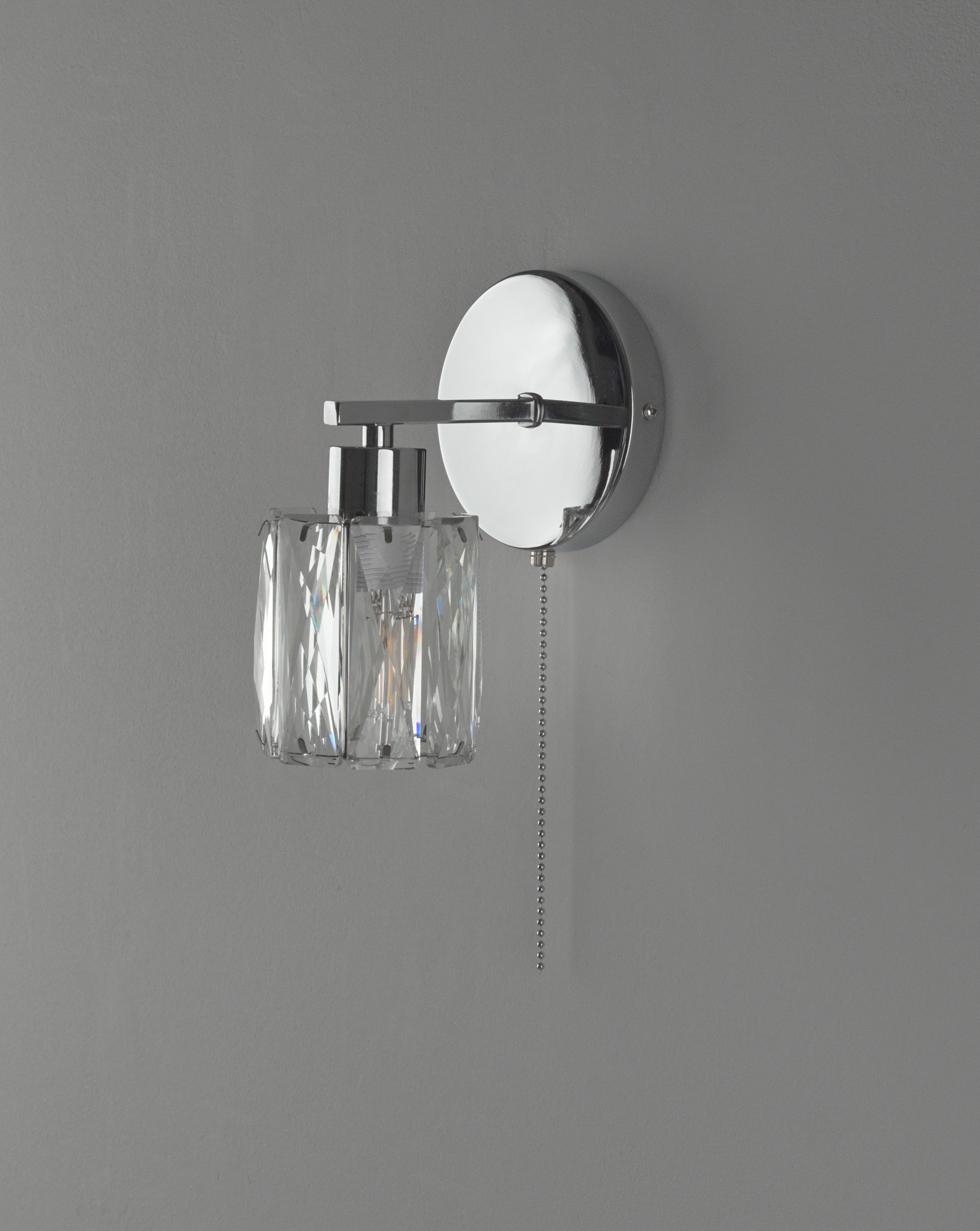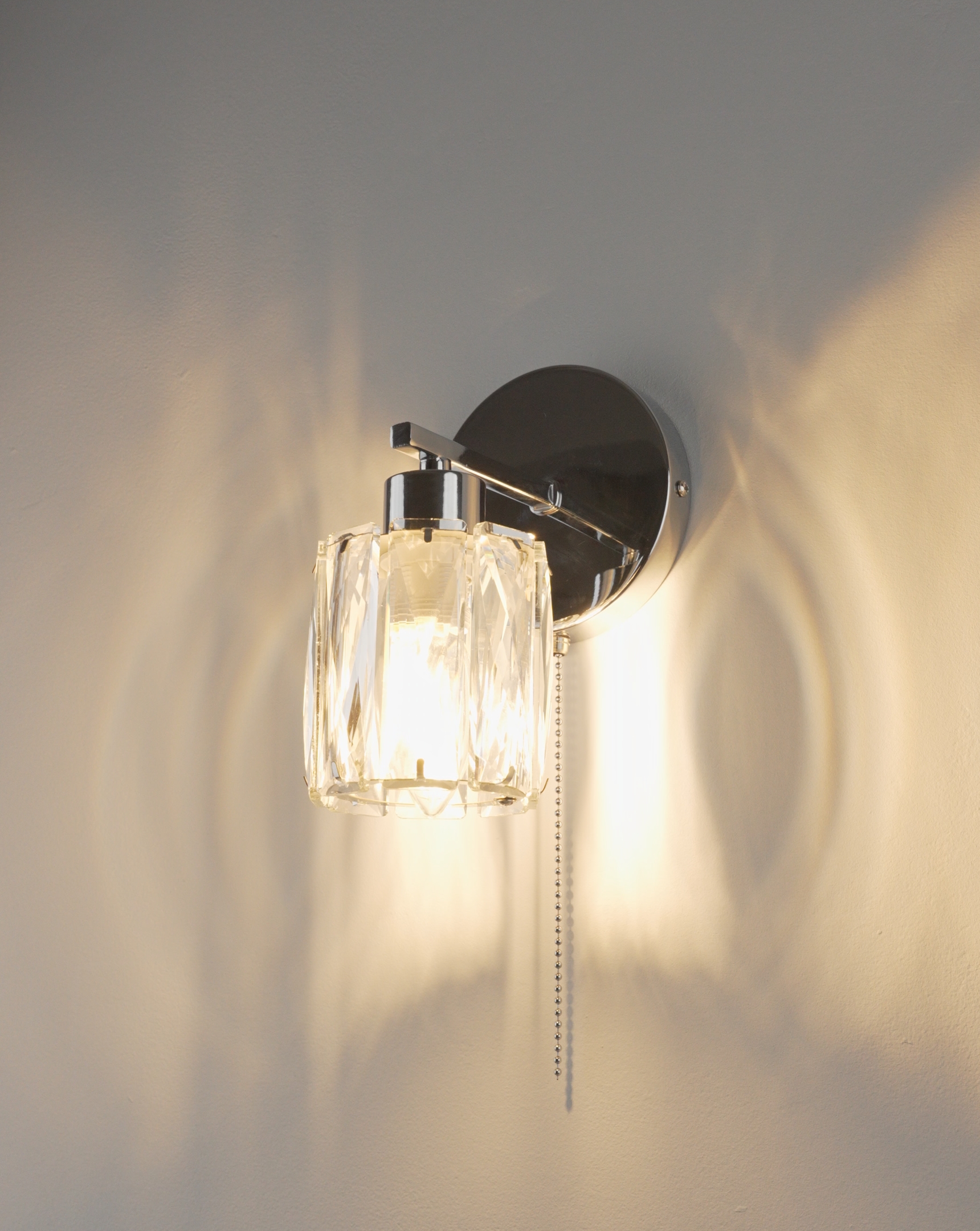 Металлический корпус с зеркальным хромовым покрытием подчёркивает прозрачность хрусталя и делает светильник универсальным решением для интерьеров в стиле классика, неоклассика и современный гламур.