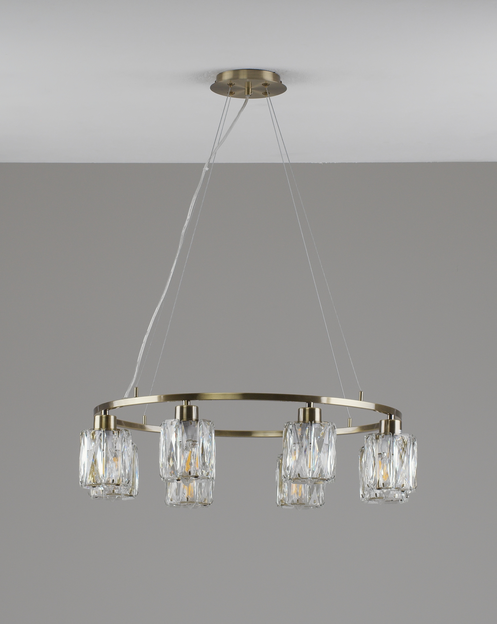 Восемь граней элегантности Люстра коллекции Prismique — это гармоничное сочетание симметрии, сияющего хрусталя и благородного металла. Аккуратные хрустальные плафоны в форме прямоугольников равномерно размещены по кругу, создавая эффект объемного и равномерного освещения.