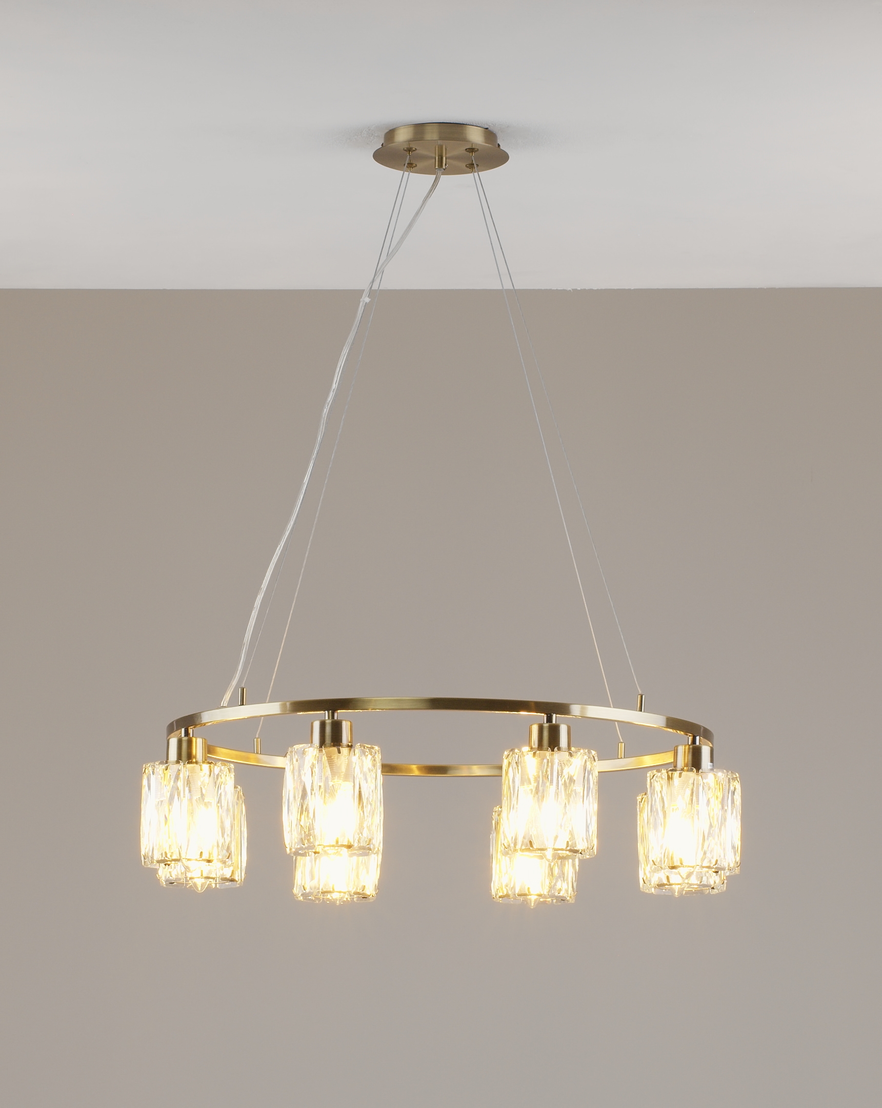Область применения Эта модель станет выразительным элементом интерьера в обеденной зоне, гостиной, спальне или ресторан с акцентом на премиальные материалы и световую атмосферу. Хрустальные элементы красиво рассыпают свет, создавая ощущение уюта и торжественности.