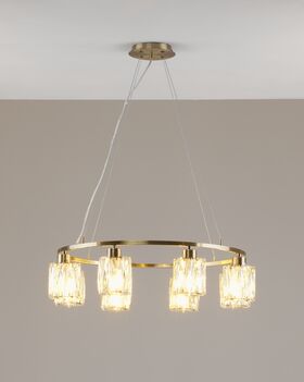 Функциональность без компромиссов Восемь патронов E14 обеспечивают мощность до 320 Вт, что позволяет осветить помещение до 18 кв.м. Благодаря регулируемой подвесной системе (высота — от 120 до 180 см), люстра легко адаптируется под разную высоту потолков, включая натяжные.