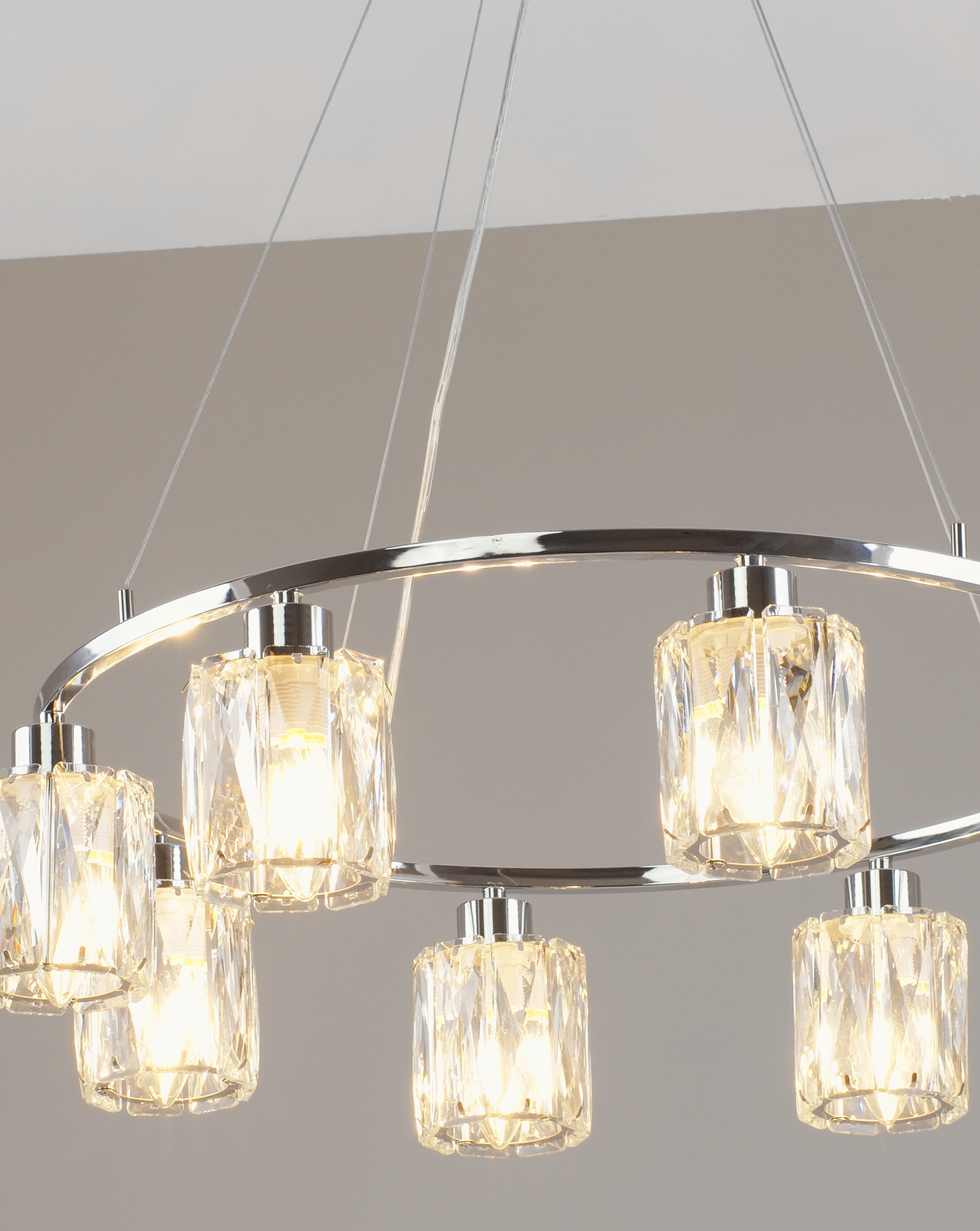 Функциональность без компромиссов Восемь патронов E14 обеспечивают мощность до 320 Вт, что позволяет осветить помещение до 18 кв.м. Благодаря регулируемой подвесной системе (высота — от 120 до 180 см), люстра легко адаптируется под разную высоту потолков, включая натяжные.