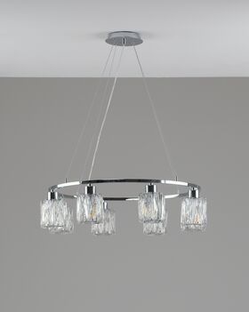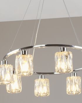 Область применения Эта модель станет выразительным элементом интерьера в обеденной зоне, гостиной, спальне или ресторан с акцентом на премиальные материалы и световую атмосферу. Хрустальные элементы красиво рассыпают свет, создавая ощущение уюта и торжественности.