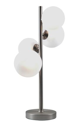 Настольная лампа Moderli V11469-4T из коллекции Renny выполнена в современном стиле, сочетая элегантность и функциональность. Ее конструкция включает металлический каркас хромированного цвета, на котором расположены четыре сферических плафона из белого стекла. Такое сочетание материалов и форм придает лампе утонченный вид, делая ее стильным акцентом в интерьере.