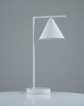 Настольная лампа Omaha выполнена в современном стиле, сочетая элегантность и функциональность. Ее конструкция включает металлический корпус с белым покрытием, придающим изделию роскошный вид. Плафон в форме конуса направлен вниз, обеспечивая направленное освещение. Основание из белого мрамора не только добавляет эстетическую привлекательность, но и обеспечивает устойчивость лампы. Такое сочетание материалов и форм делает эту лампу стильным акцентом в интерьере. Прекрасное дополнение рабочего пространства в стиле лофт или модерн.