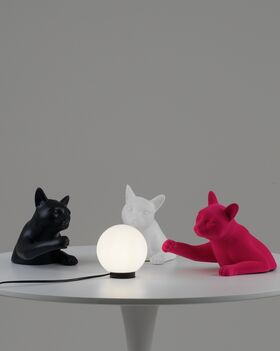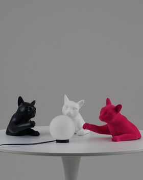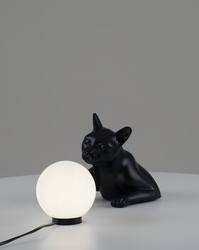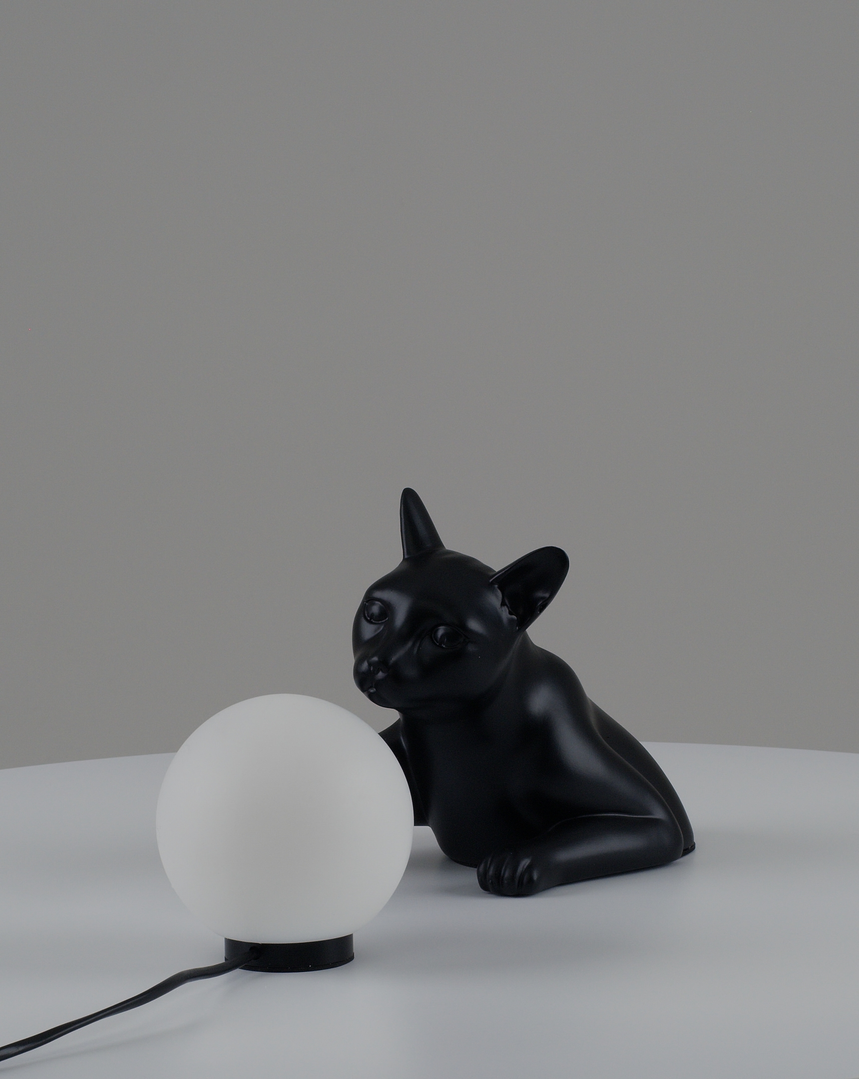 Корпус выполнен из прочных и долговечных материалов с приятной тактильной поверхностью. Силуэт кошки сочетается с плафоном в виде шара, создавая сбалансированный контраст и мягкое освещение.