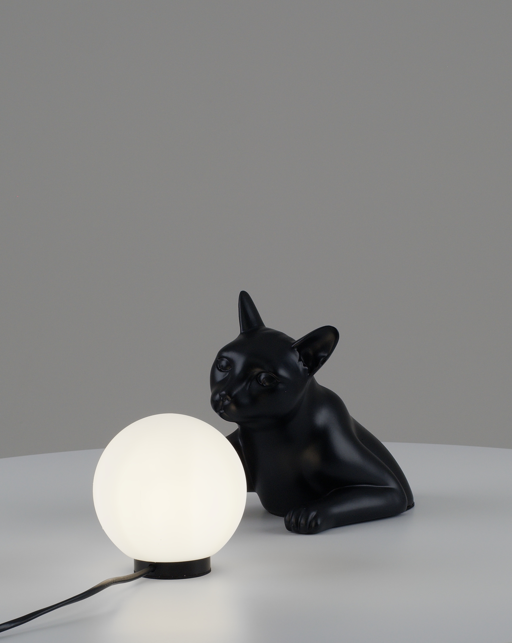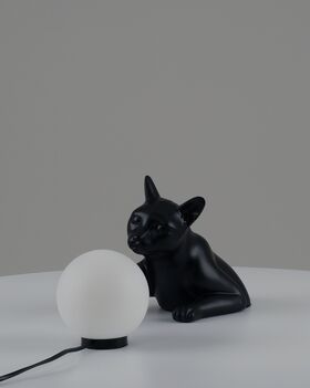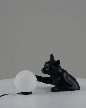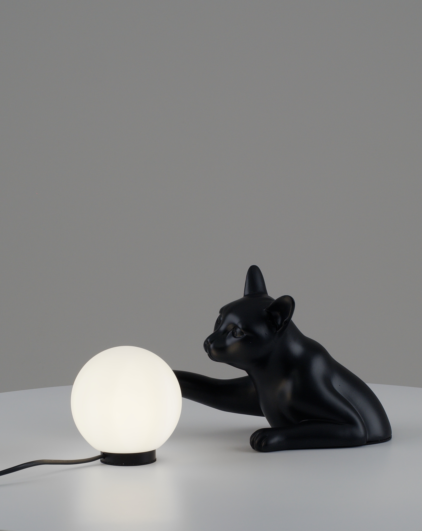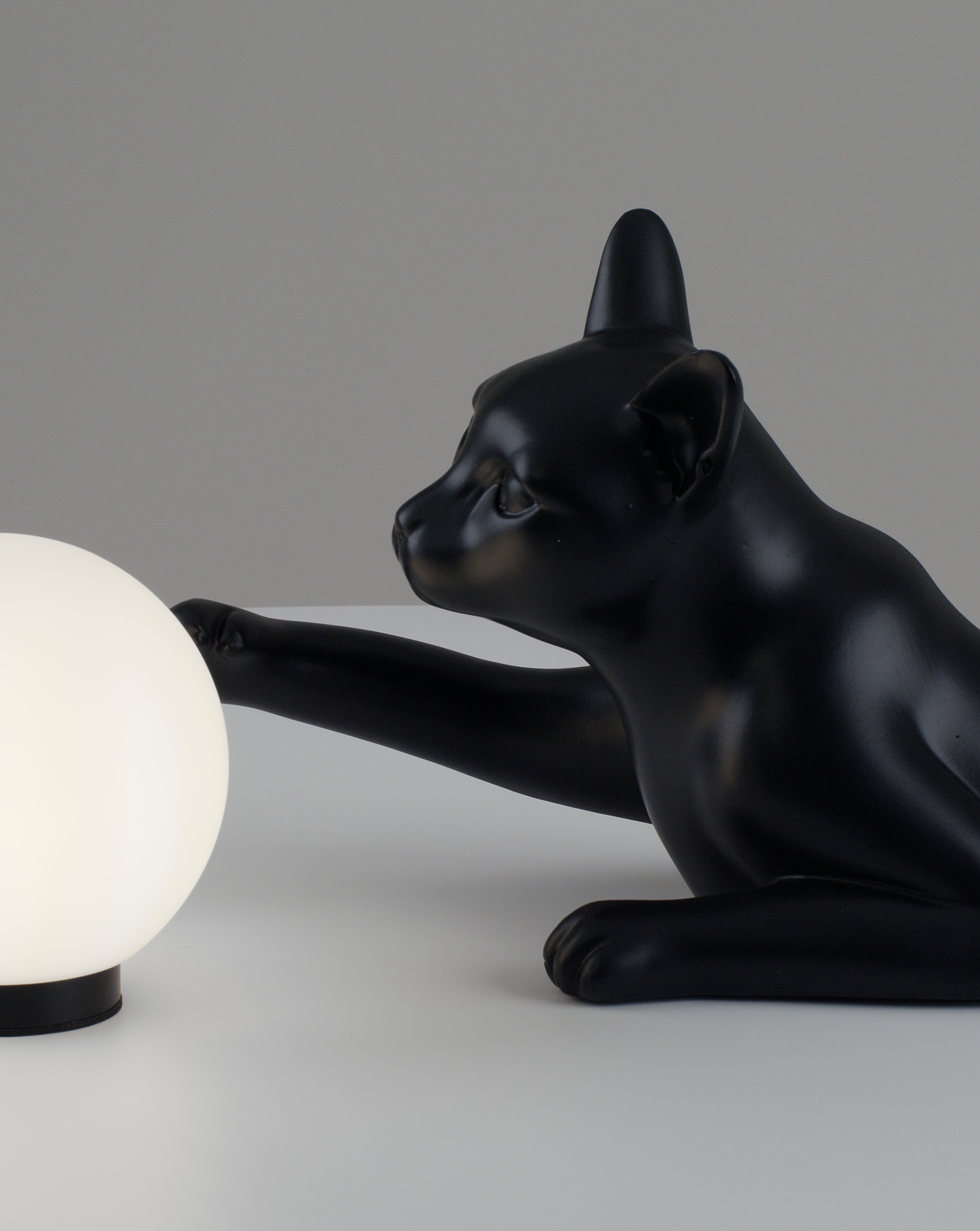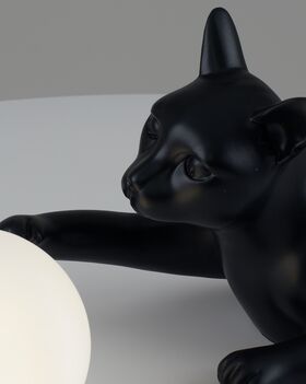 Оригинальная настольная лампа в виде черной кошки, аккуратно придерживающей светящийся шар, сразу притягивает взгляд. Это не просто осветительный прибор — это декоративный акцент, который оживит интерьер и добавит в него уюта.