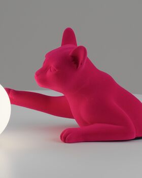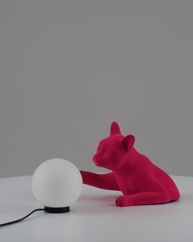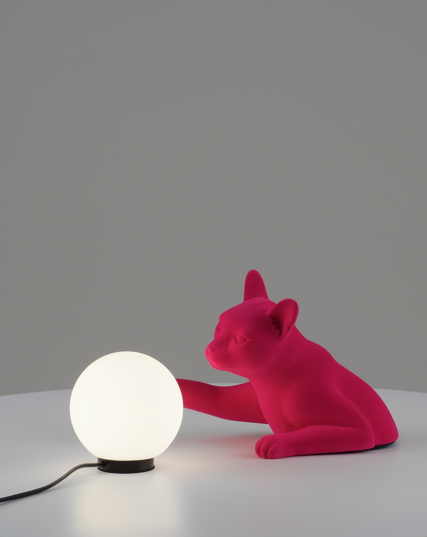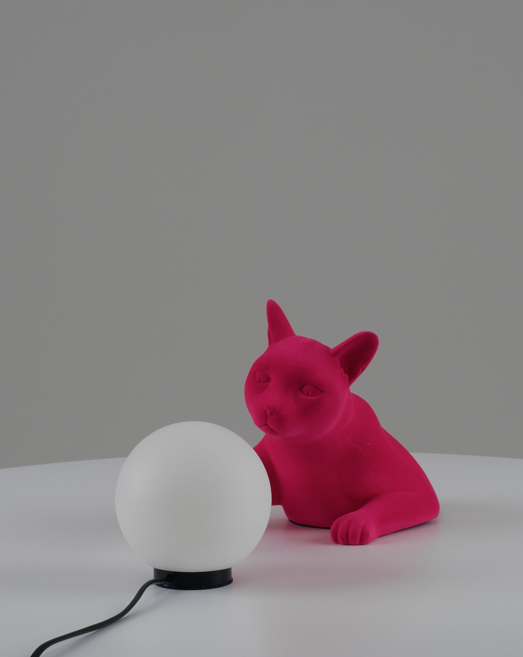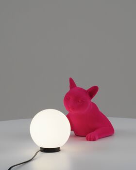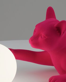 Настольная лампа Monya – арт-объект и уютный свет - яркая кошка играет с белым шаром