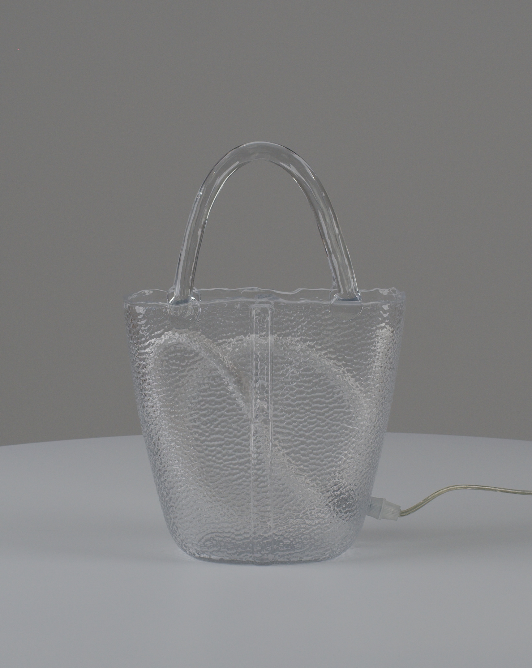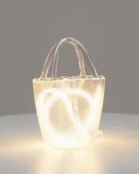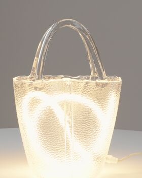 Настольная лампа Bag переосмысливает привычное освещение, превращаясь в настоящий арт-объект. Корпус выполнен из фактурного прозрачного стекла, стилизованного под модную сумку. Внутри — гибкий неоновый шнур с тёплым свечением, создающий уютную и мягкую атмосферу. Такой светильник невозможно не заметить — он будто светится изнутри, подчёркивая свой уникальный характер.
