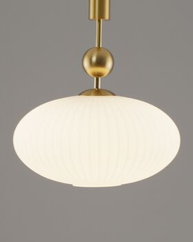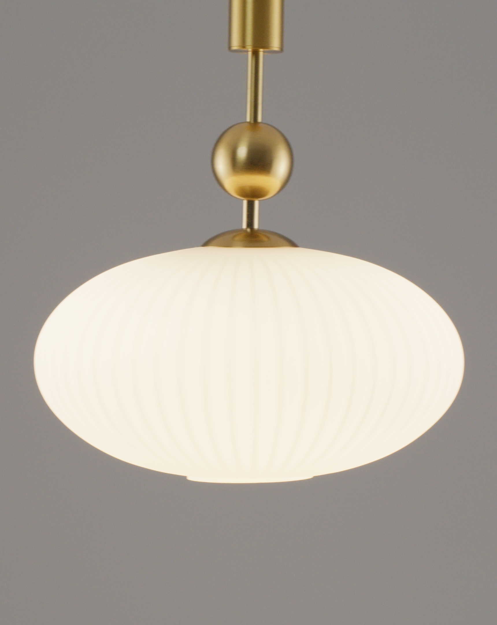 Современный и стильный подвесной светильник Creamy. Стеклянный матовый плафон мягко рассеивает свет для комфортного освещения. В качестве источника света подойдут лампы с цоколем E27. Каркас выполнен из металла в простом и лаконичном стиле, гармонично сочетается со сферичным плафоном. При монтаже высоту светильника можно отрегулировать по высоте.
