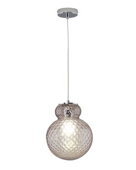 Материалы и цвета. Плафон светильника выполнен из прозрачного стекла с декоративной фактурной обработкой, создающей эффект бриллиантового узора. Хромированные элементы придают модели современный и элегантный вид.