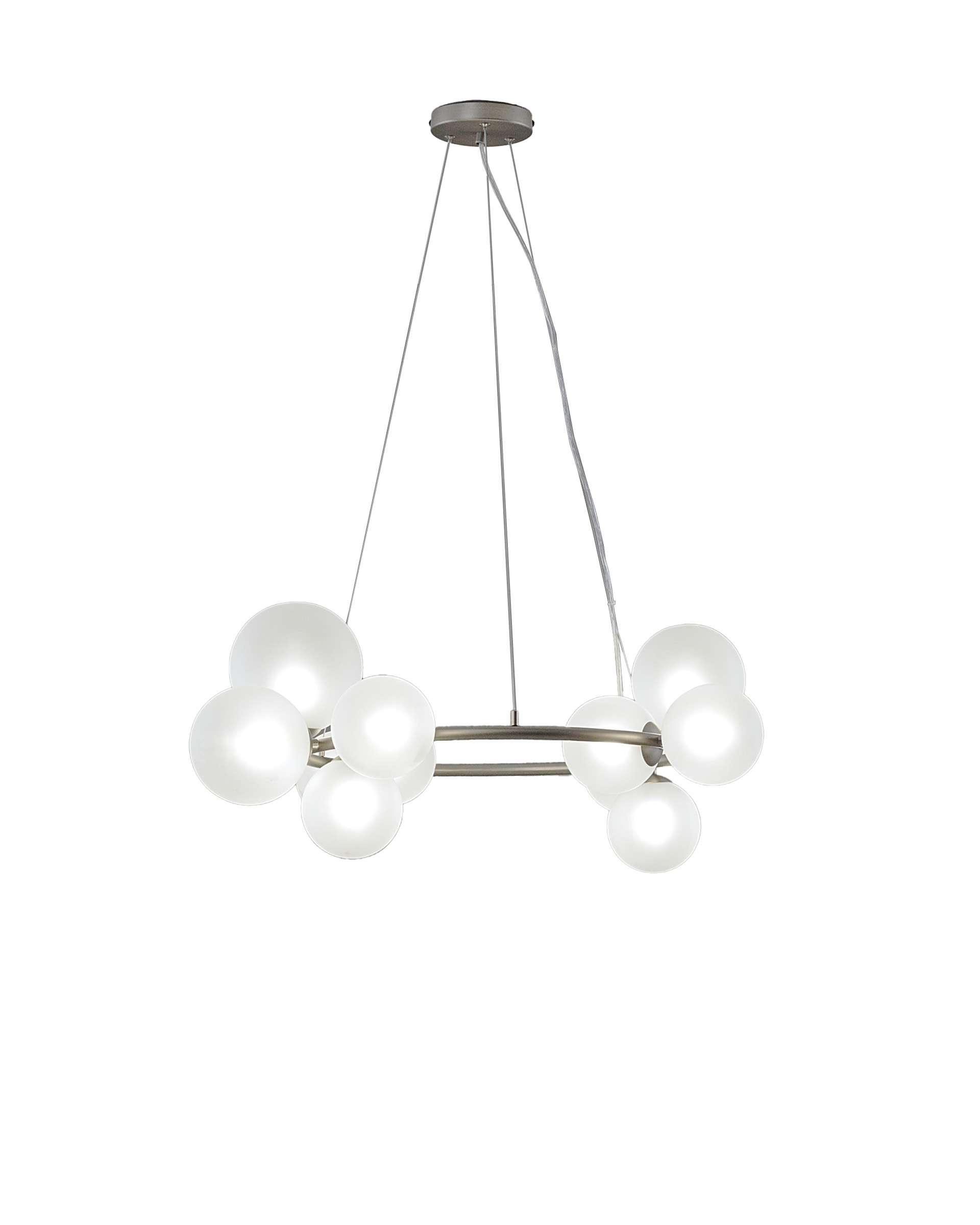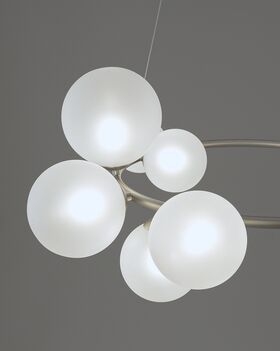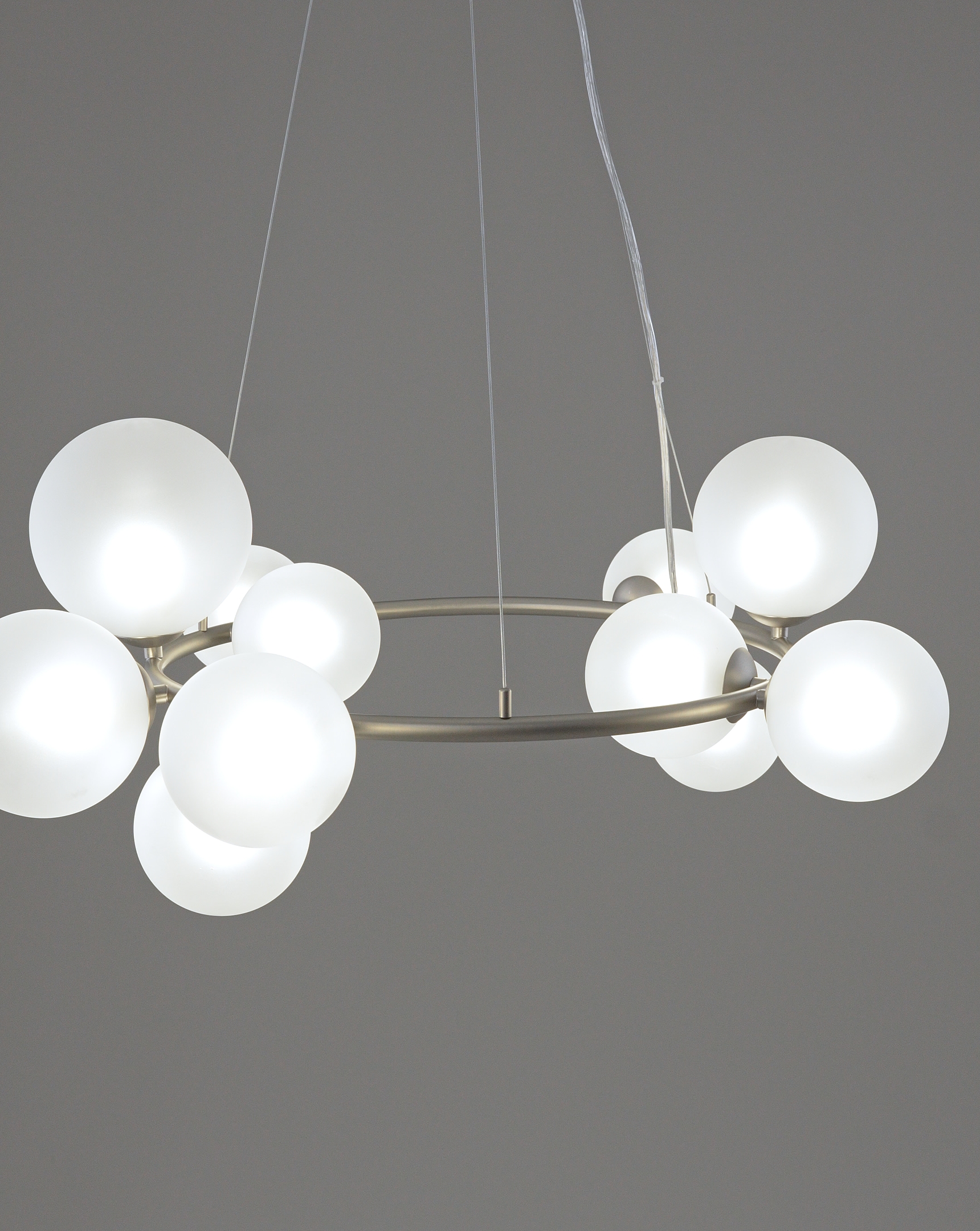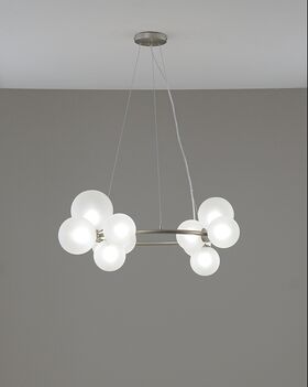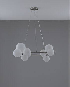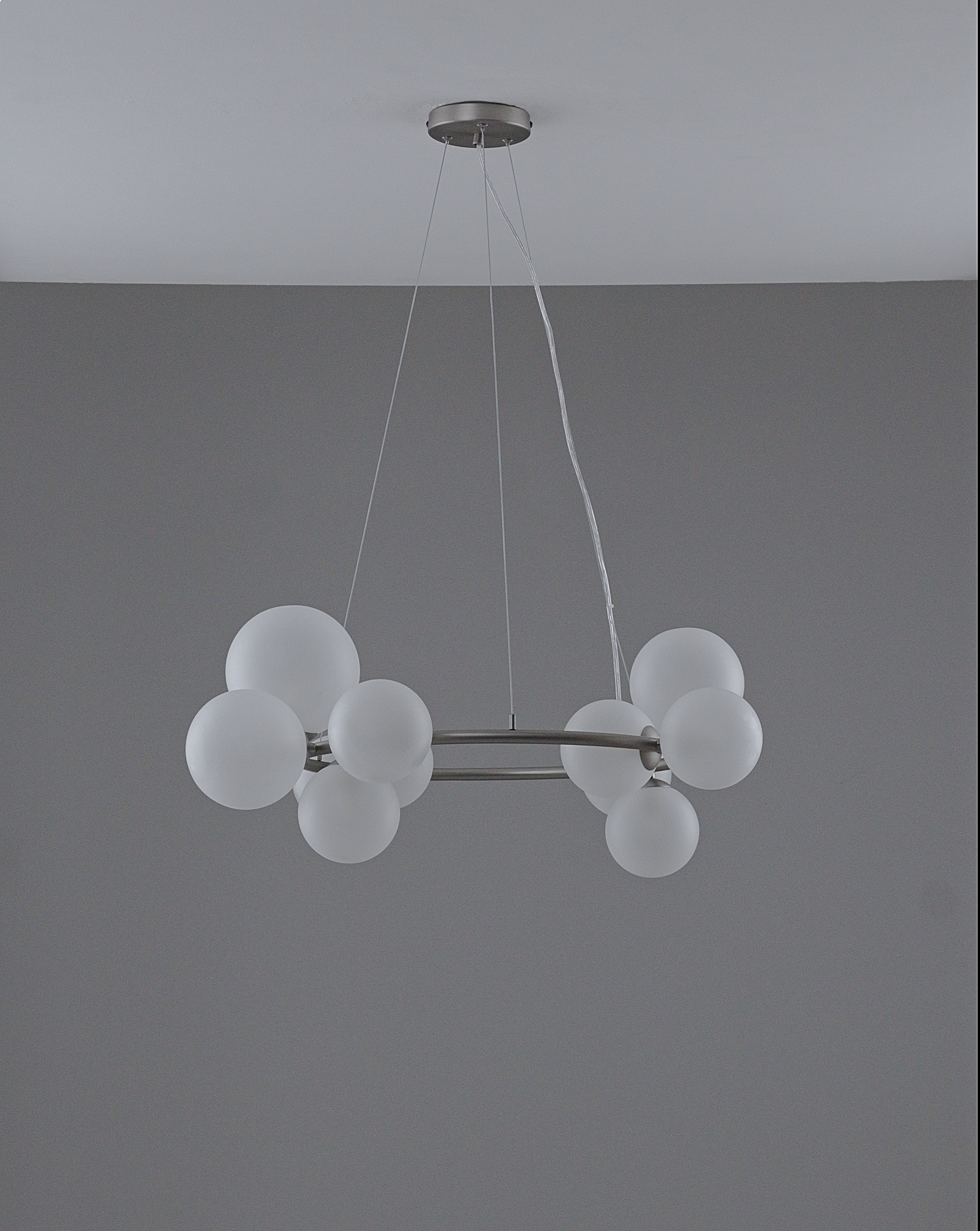 Современный подвесной светильник серии Renny. Оригинальный и лаконичный дизайн в металлическом каркасе хромированного цвета украшенный белыми сферическими плафонами. В качестве источника света можно использовать лампы накаливания или LED с цоколем G9. Общая мощность освящения до 55 Вт. Вся конструкция надежно крепится на планку. Данная модель станет отличным дополнением для кухни, холла или гостиной. При монтаже светильника, высоту можно отрегулировать.