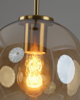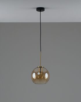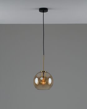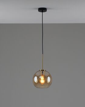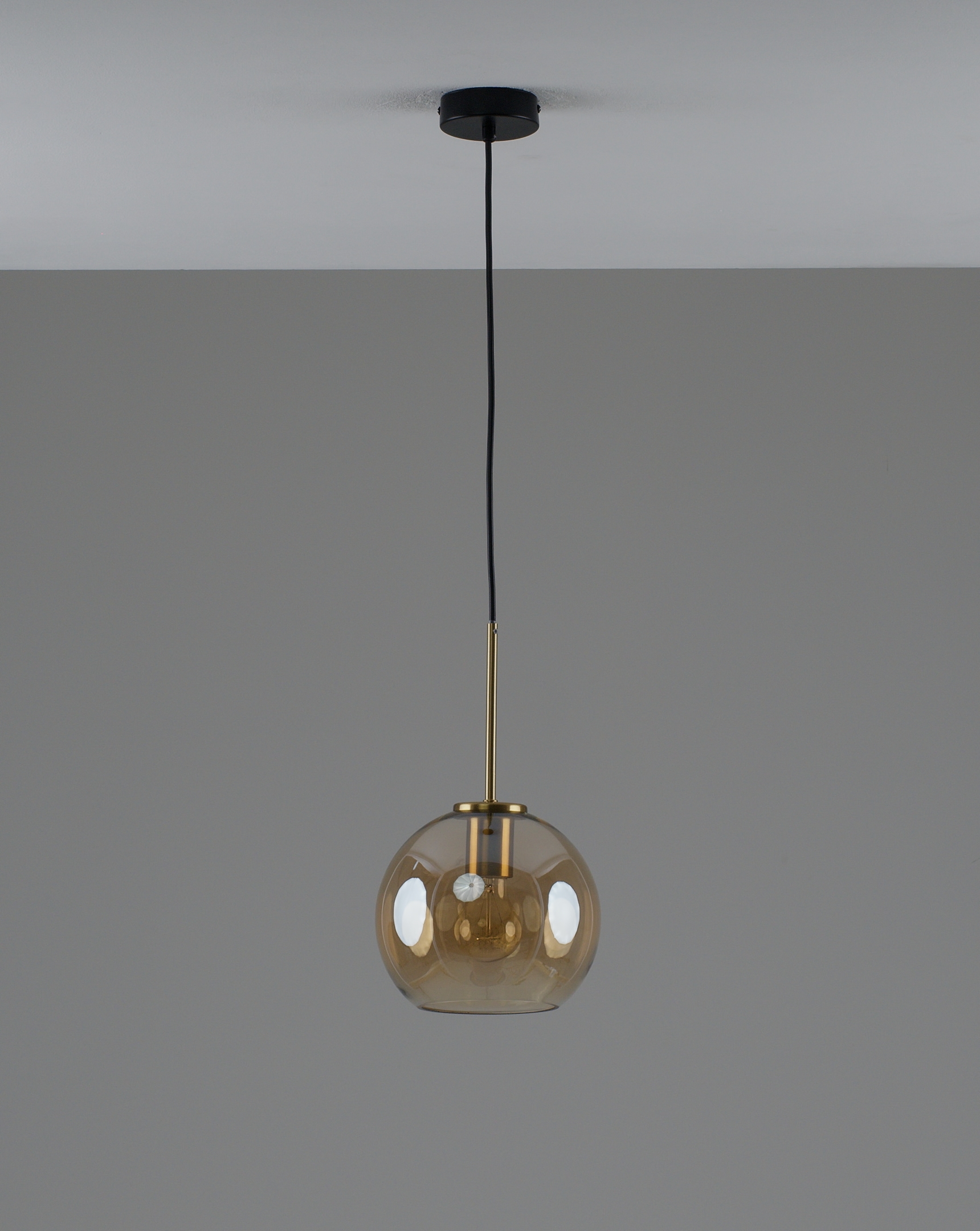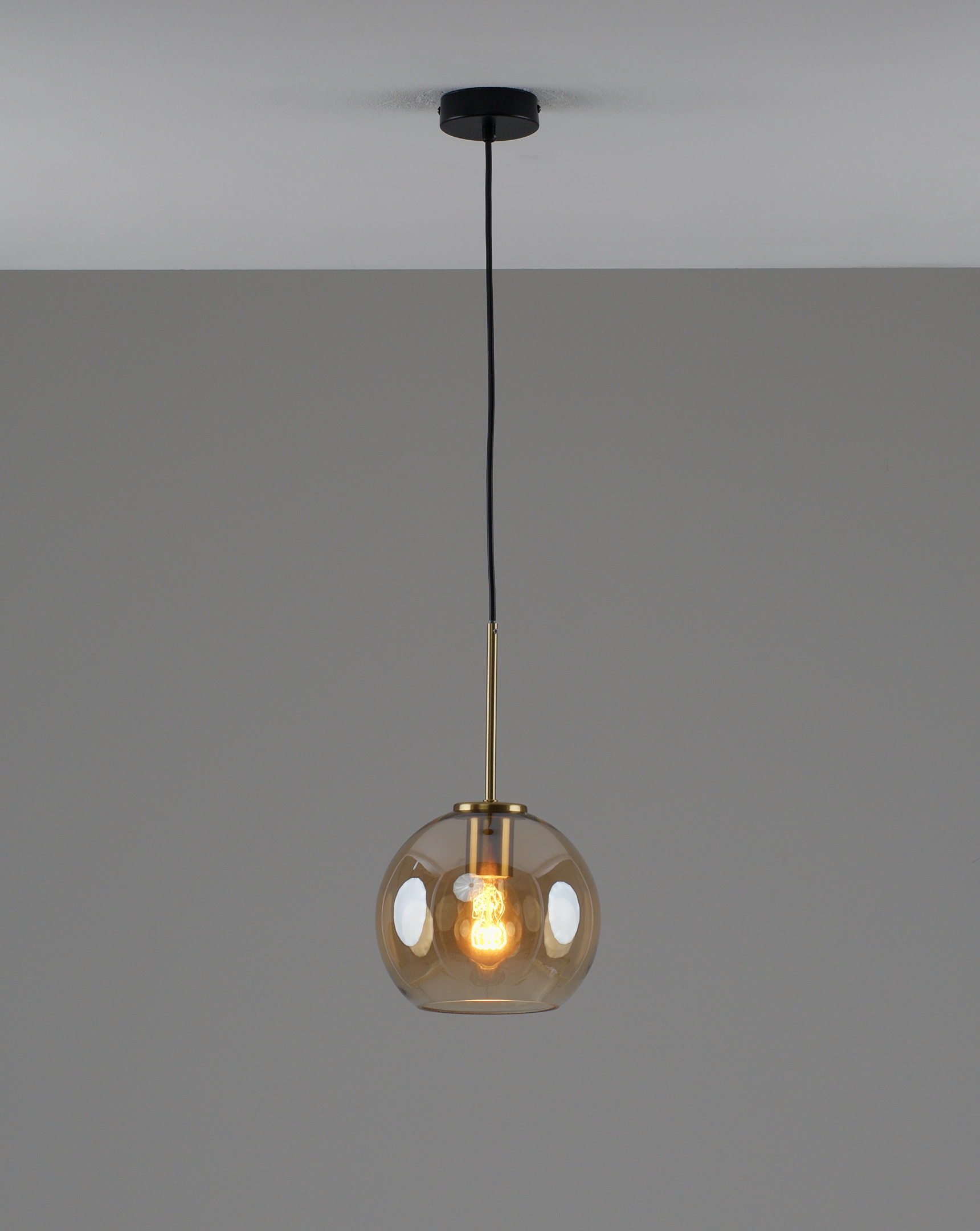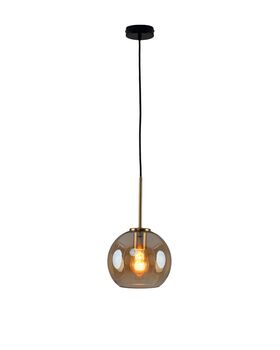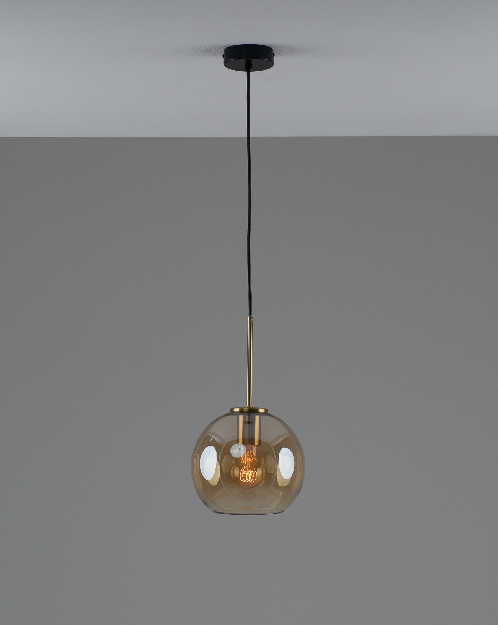 Подвесной светильник Sumatra в современном стиле. Плафон из прозрачного стекла с кофейным оттенком гармонично сочетается с металлическим каркасом цвета золота. Диаметр стеклянного плафона 20 см, в качестве источника света могут быть использованы лампы накаливания или LED с цоколем Е27. С площадью освещения 3 м? светильник подойдёт для кухни, спальни, коридора. При монтаже светильника, высоту можно отрегулировать.