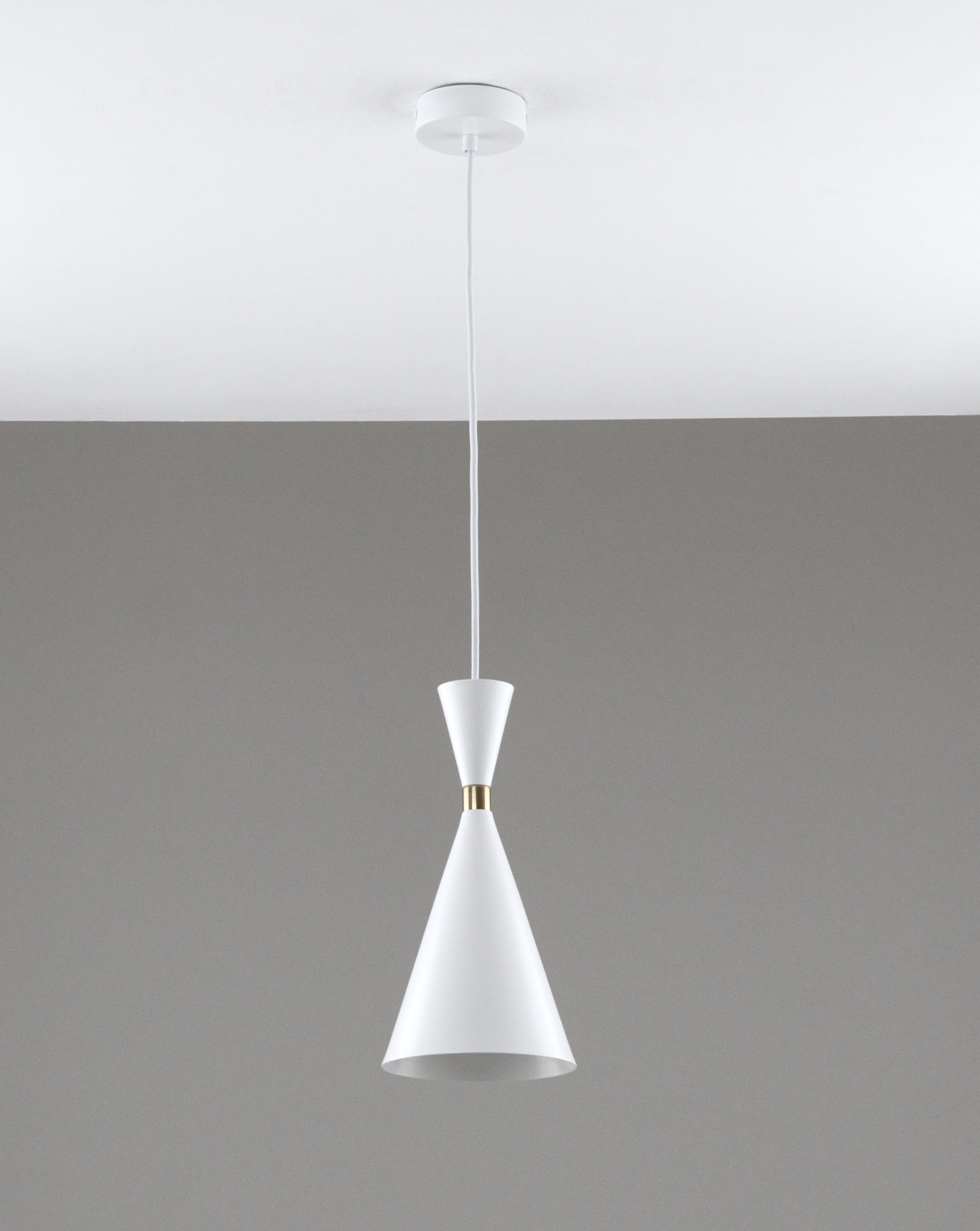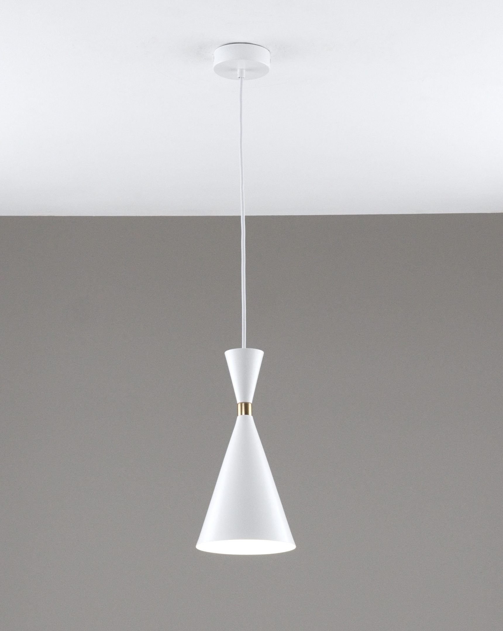Стильный подвесной светильник в лофт стиле. Белый алюминиевый плафон декорирован золотой вставкой, которая дополняет дизайн и гармонично контрастирует с цветом светильника. Подвесной светильник Forli станет также отличным дополнением интерьеров в современном стиле. Прекрасно подойдет для освещения зала, гостиной, кухни. Площадь освещения 3 кв. м. При монтаже светильника, высоту можно отрегулировать.