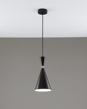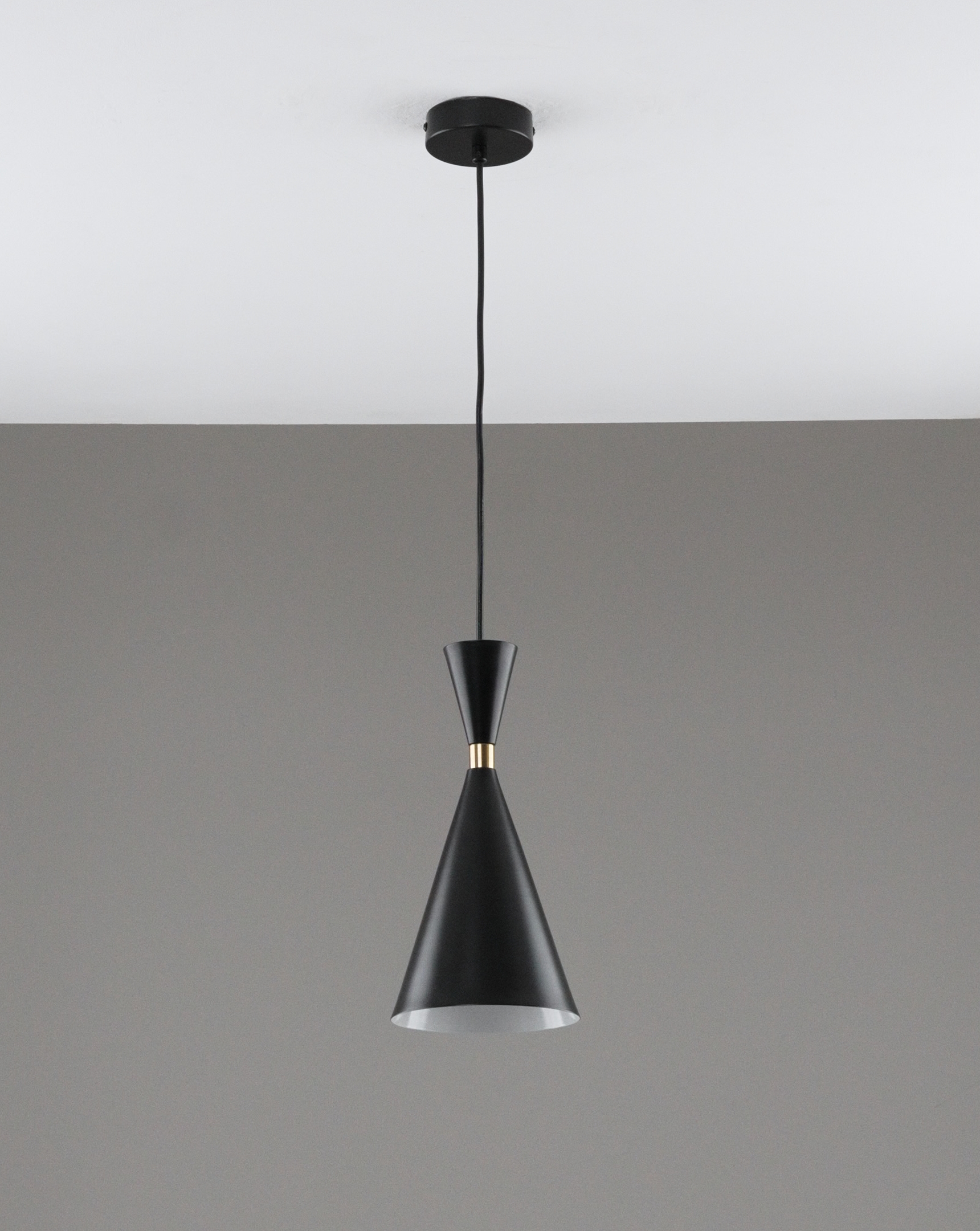 Стильный подвесной светильник в лофт стиле. Черный алюминиевый плафон декорирован золотой вставкой, которая дополняет дизайн и гармонично контрастирует с цветом светильника. Подвесной светильник Forli станет также отличным дополнением интерьеров в современном стиле. Прекрасно подойдет для освещения зала, гостиной, кухни. Площадь освещения 3 кв. м. При монтаже светильника, высоту можно отрегулировать.