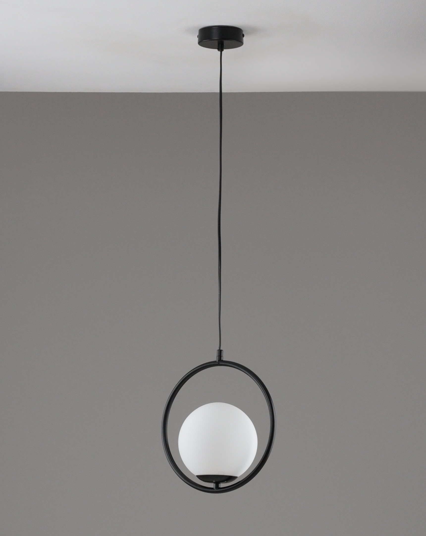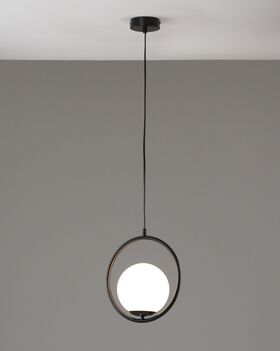 Современный и стильный подвесной светильник Barocco. Стеклянный матовый плафон мягко рассеивает свет для комфортного освещения. В качестве источника света подойдут лампы с цоколем E27. Каркас выполнен из металла в простом и лаконичном стиле, гармонично сочетается со сферичным плафоном. Конструкция надежно крепится к потолку на планку. Общая высота светильника 120 см, идеальный вариант для комнат с высокими потолками. При монтаже светильника, высоту можно отрегулировать.