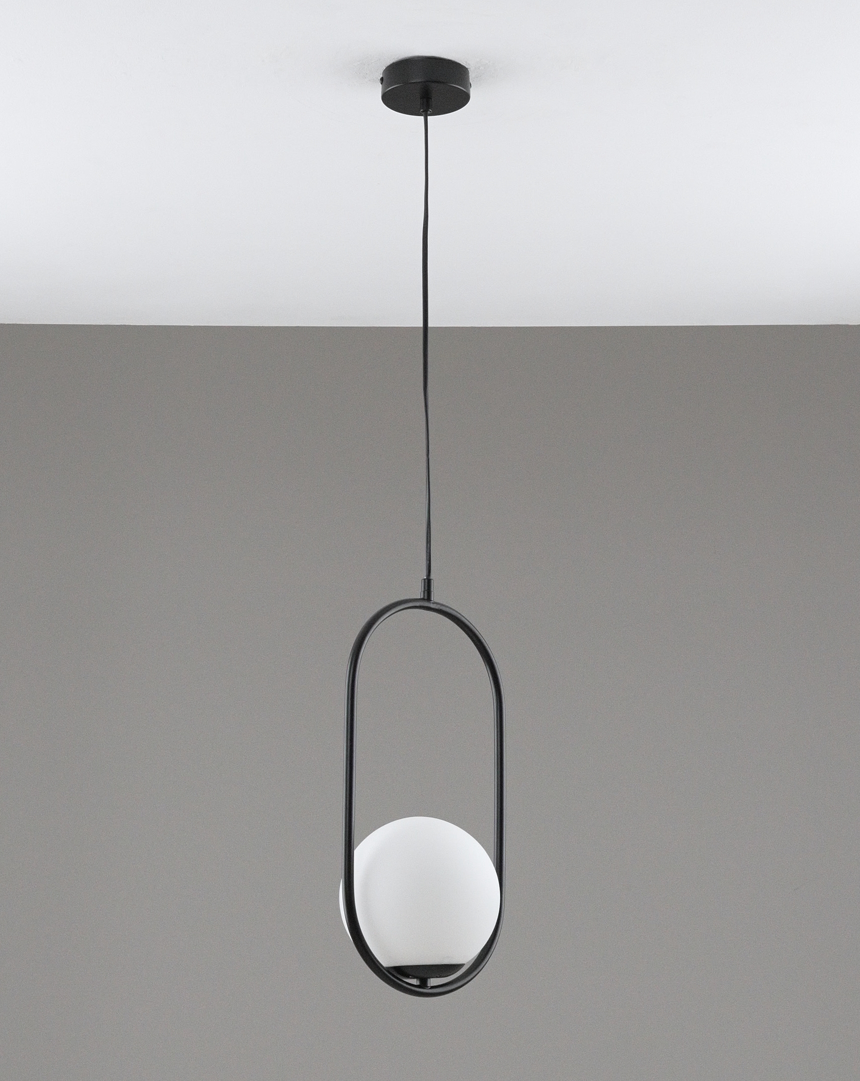 Лаконичный подвесной светильник от итальянского бренда Moderli. Простой и аккуратный дизайн дополнит современный интерьер. Плафон гармонично сочетается с овальным металлическим каркасом, а матовое стекло мягко рассеивает свет. Данная модель подойдет для комнат с высокими потолками, площадь освещения составляет 3 м?. При монтаже светильник можно отрегулировать по высоте.